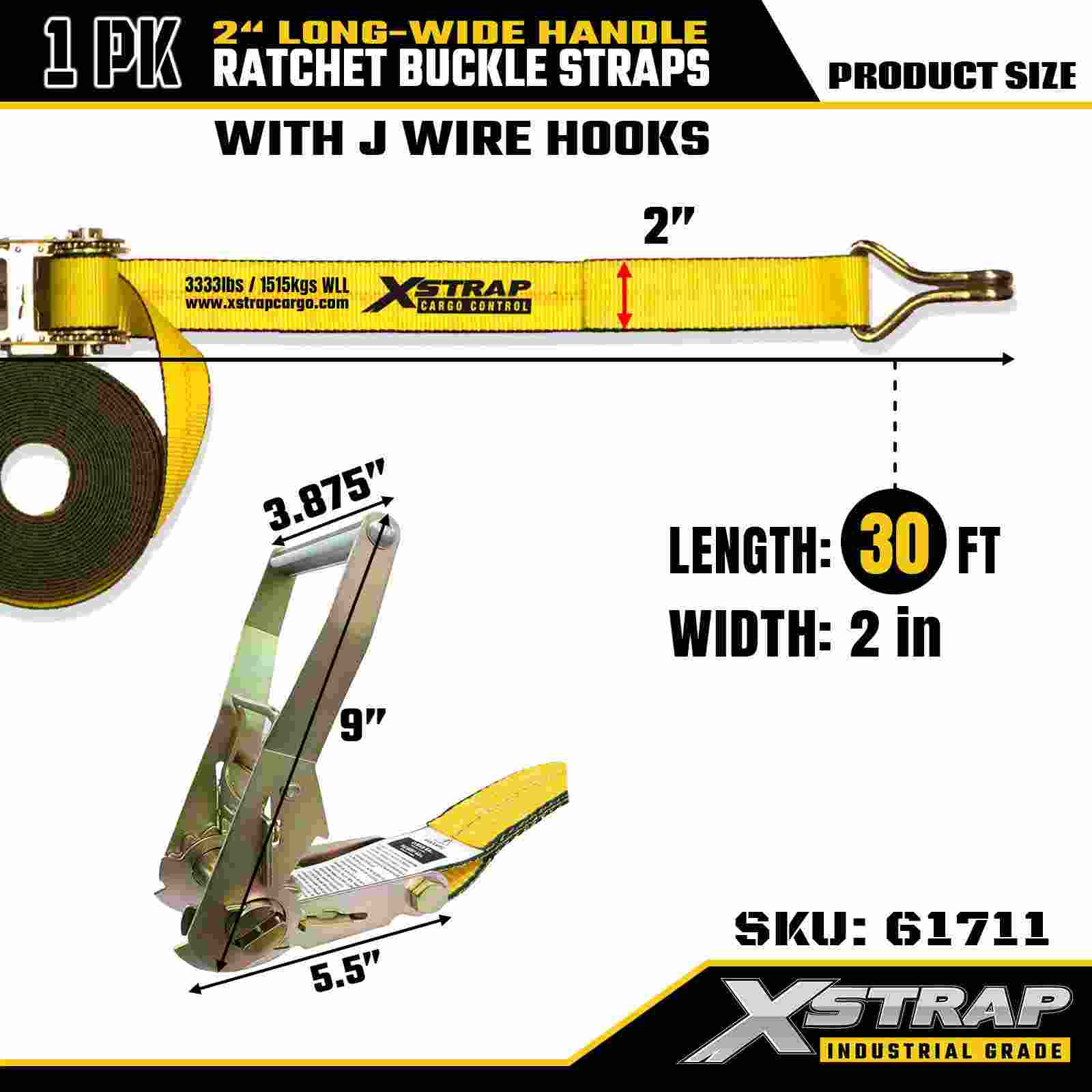 Xstrap 61711Premium spanbanden met ratel, 2" x 30ft (1-pak) met draadhaken, 10.000 lbs breuksterkte, heavy-duty spanbanden voor veeleisend transport