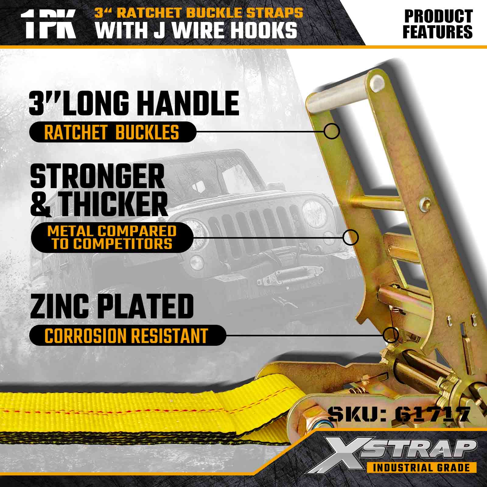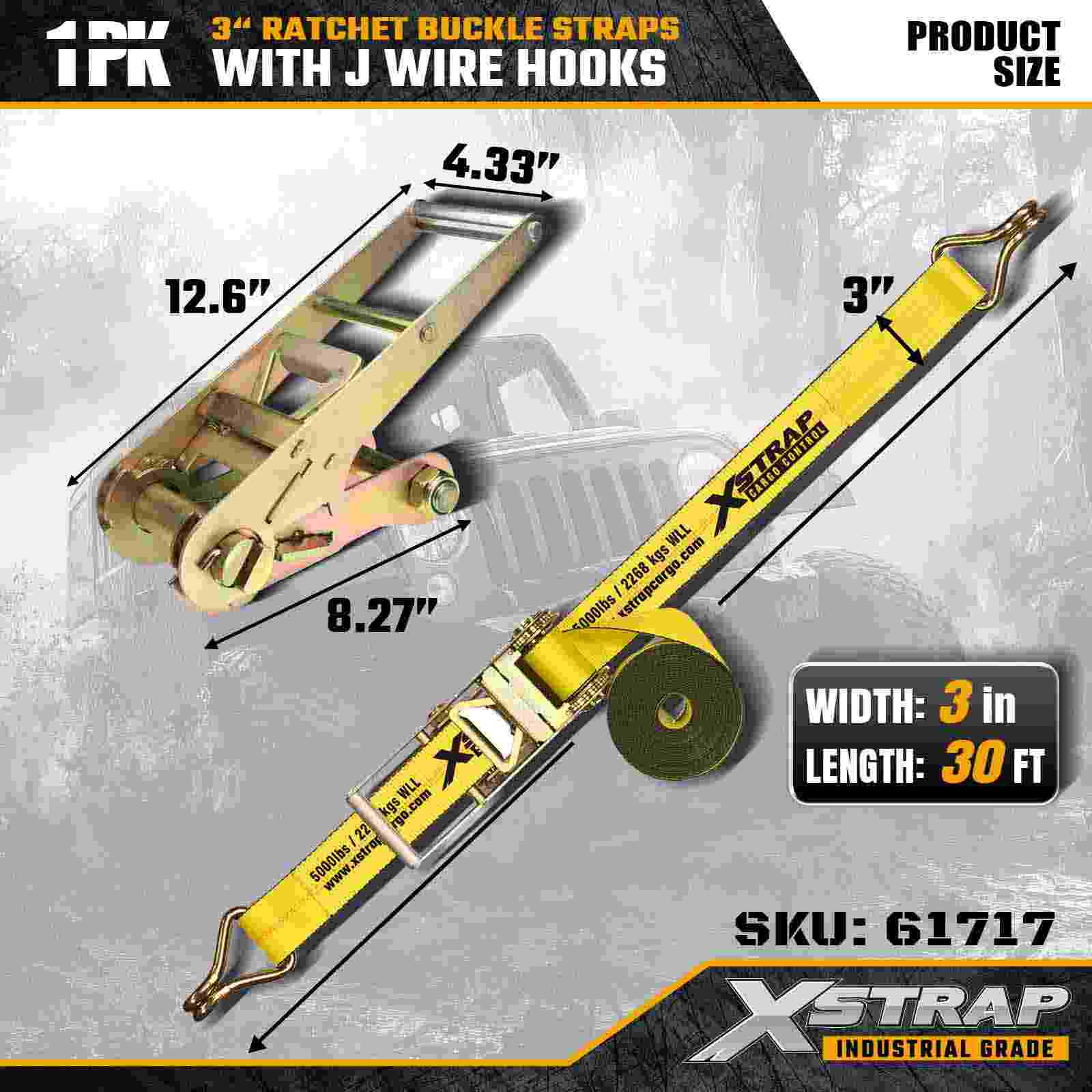 De Xstrap 61717 3" x 30ft ratelgespriem (1-pack) is ontworpen voor veeleisende vrachttoepassingen, met versterkte draadhaken en een hoogspanningsratelsysteem. Met een werklastlimiet van 5.000 lbs en een breeksterkte van 15.000 lbs levert deze riem betrouwbare prestaties voor diepladers, transport van apparatuur en industriële logistiek.