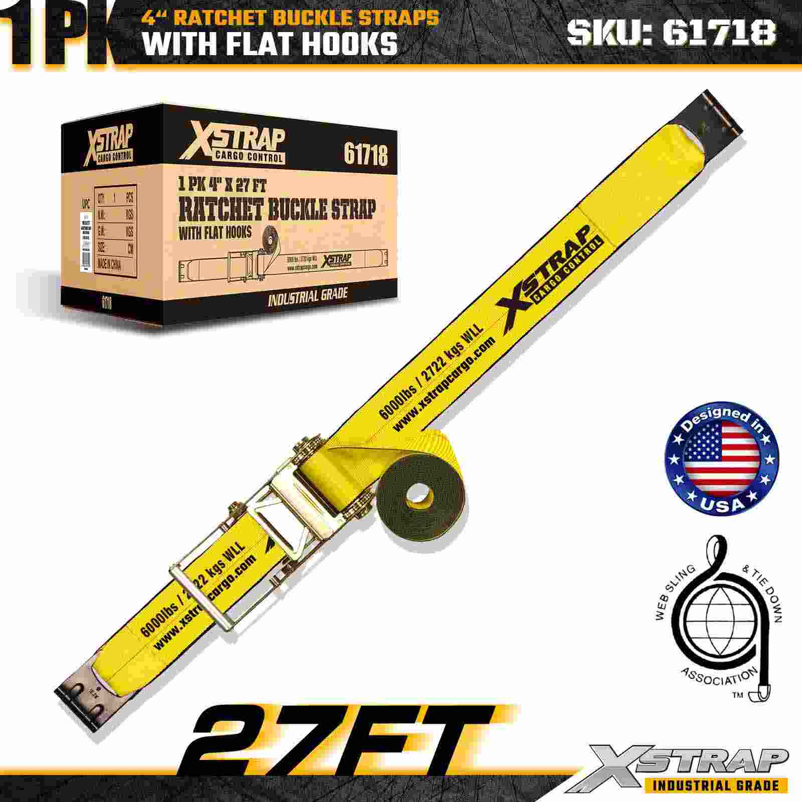 De Xstrap 61718 4" x 27ft ratelgespriem (1-pack) is gebouwd voor het vastzetten van lading onder extreme omstandigheden, met versterkte platte haken en een robuust ratelmechanisme. Met een werklastlimiet van 6.000 lbs en een breeksterkte van 18.000 lbs is deze riem ontworpen voor professioneel transport op een dieplader, bouwmaterialen, machinetransport en industriële logistiek waarbij maximale sterkte en betrouwbaarheid essentieel zijn.