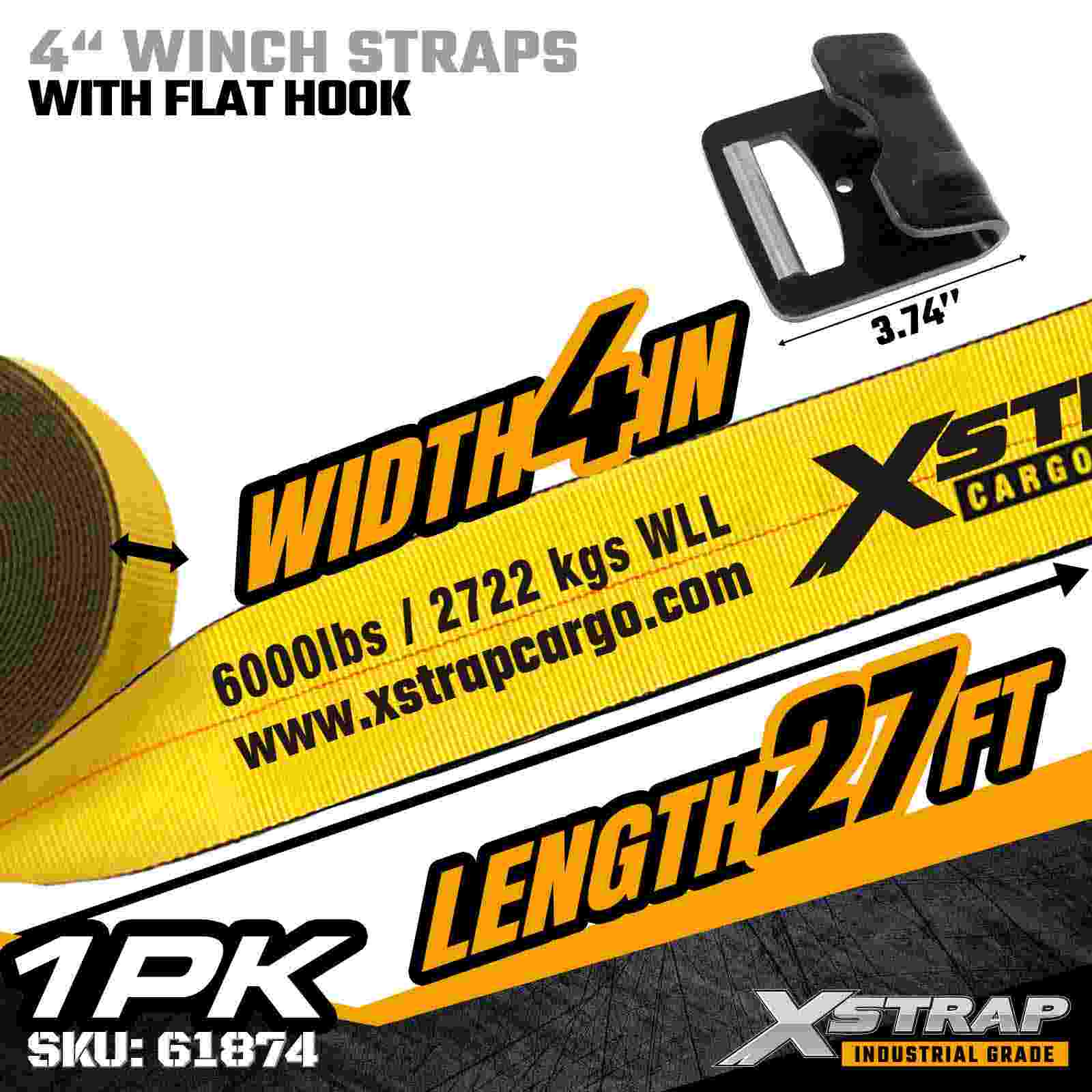 De Xstrap 61874 4" x 27ft standaard lierband is een heavy-duty ladingzekeringsband met hoge capaciteit, ontworpen voor diepladers en industrieel transport. Deze 4" lierband is voorzien van een versterkte platte haak en een extra brede 4-inch polyester band en levert een werklastlimiet van 6.000 lbs en een breeksterkte van 18.000 lbs. De bredere band zorgt voor een superieure verdeling van de lading, waardoor hij ideaal is voor het vastzetten van zware, omvangrijke of delicate vracht die maximale stabiliteit vereist.