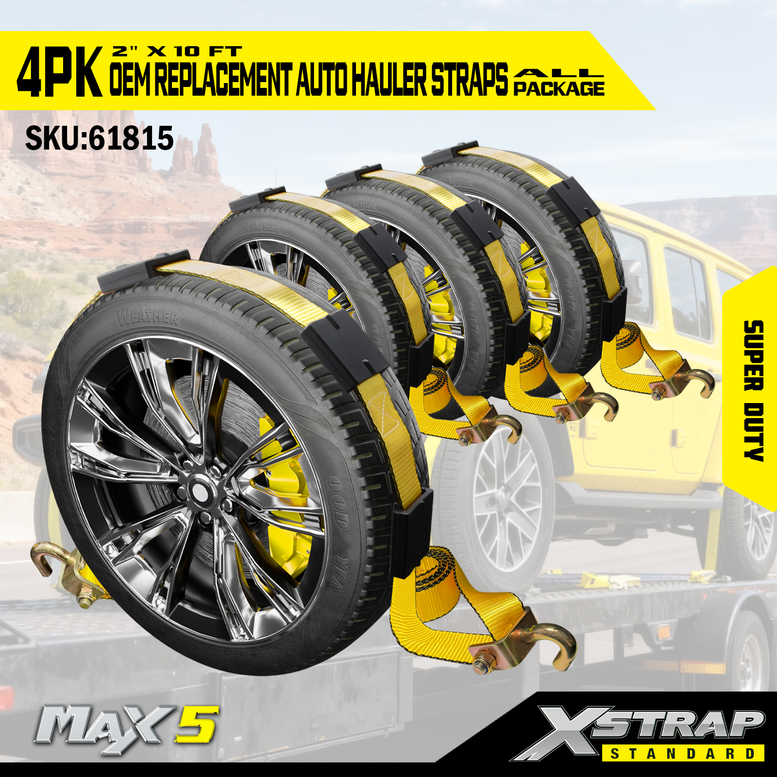 Xstrap Autotransportbanden Heavy Duty 6,600 lbs Breuksterkte - Bandspanbanden voor aanhangwagens, over het wiel spanbanden met rubberen schoenplaten voor SUV, vrachtwagen, ATV, UTV