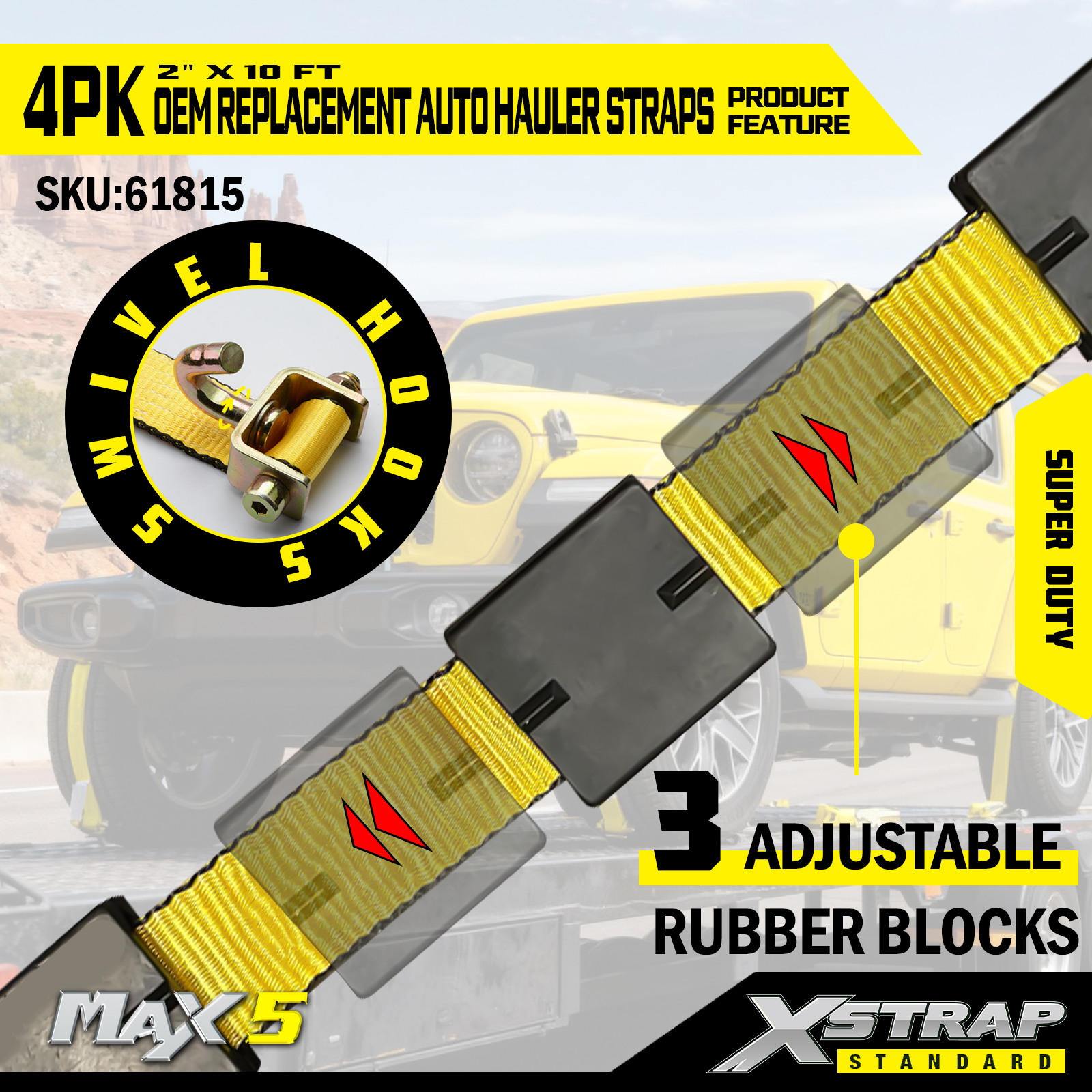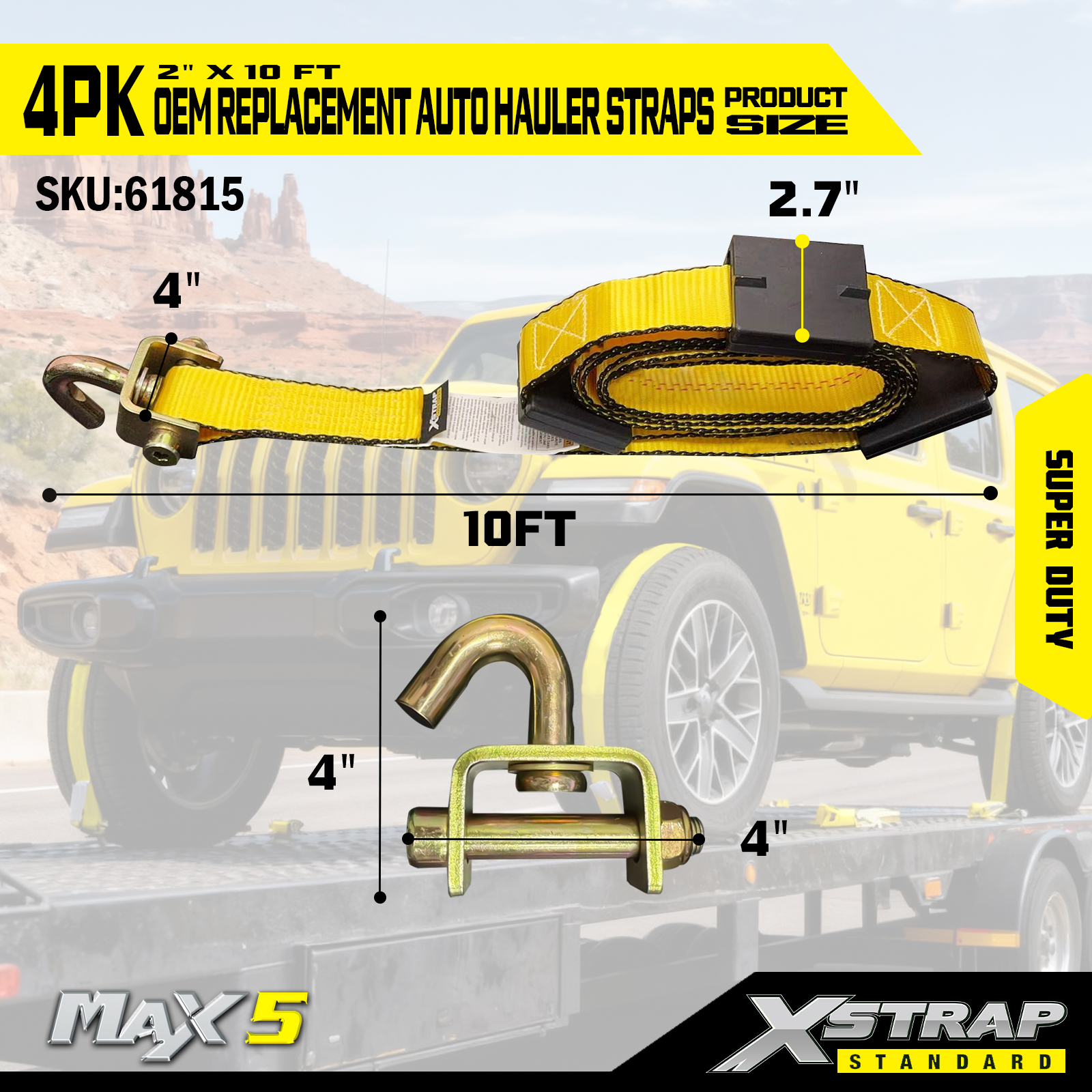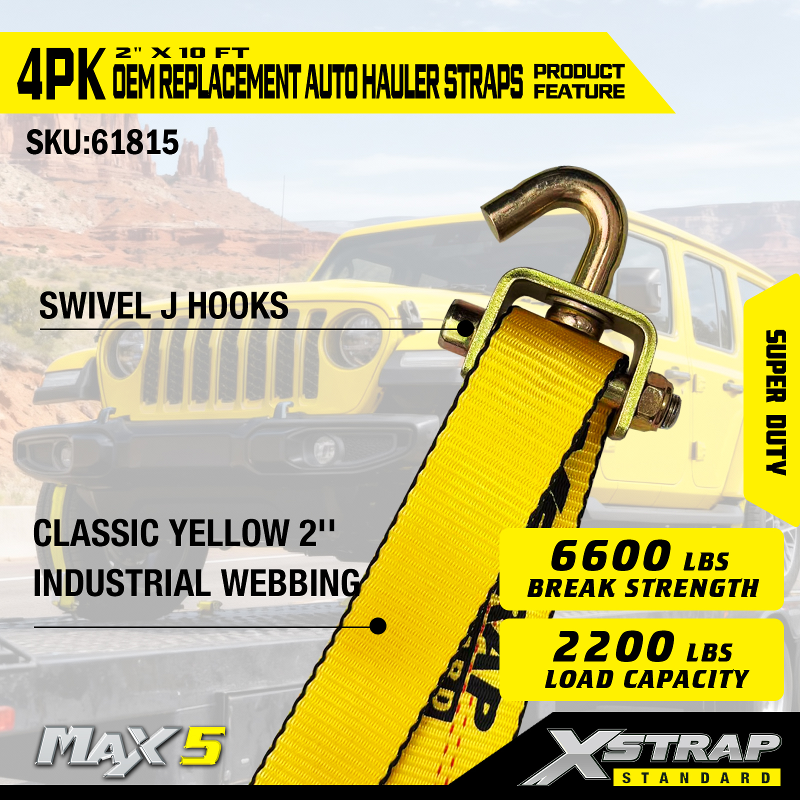 - Super Duty-laadvermogen: geschikt voor een veilige werklast van 2.200 LBS en een breeksterkte van 6.600 LBS, en voldoet aan de eisen van zwaar voertuigtransport.