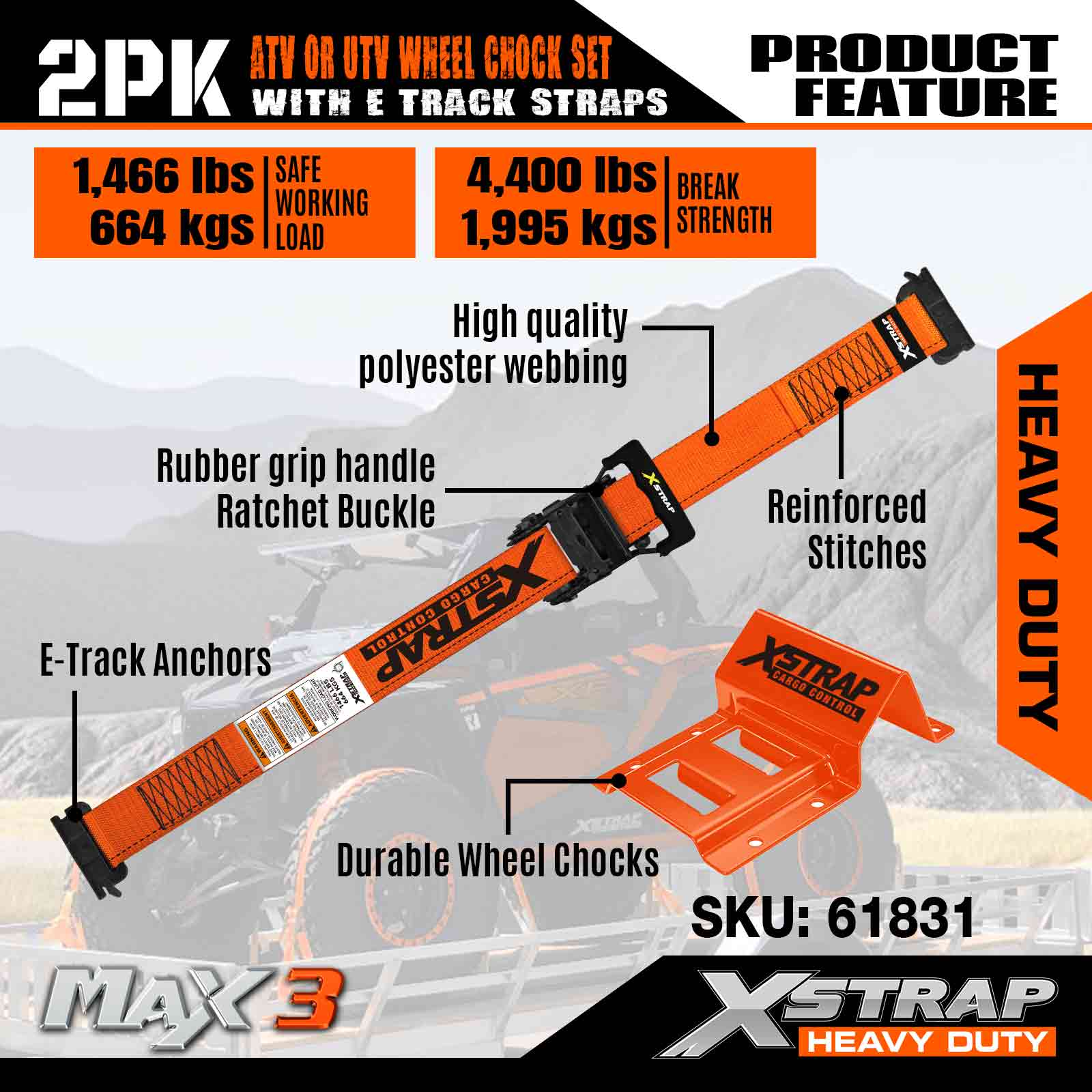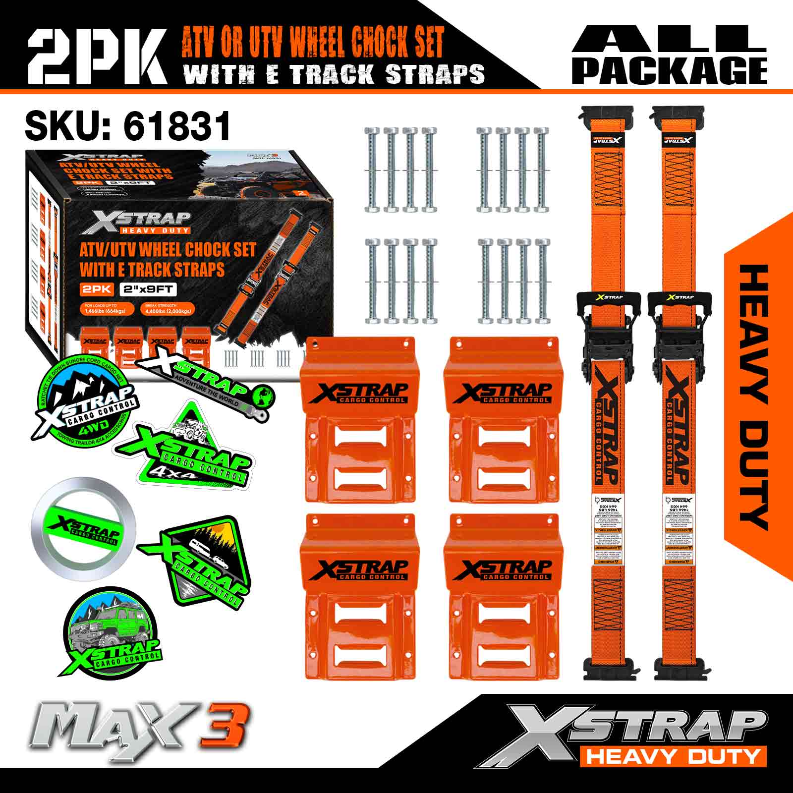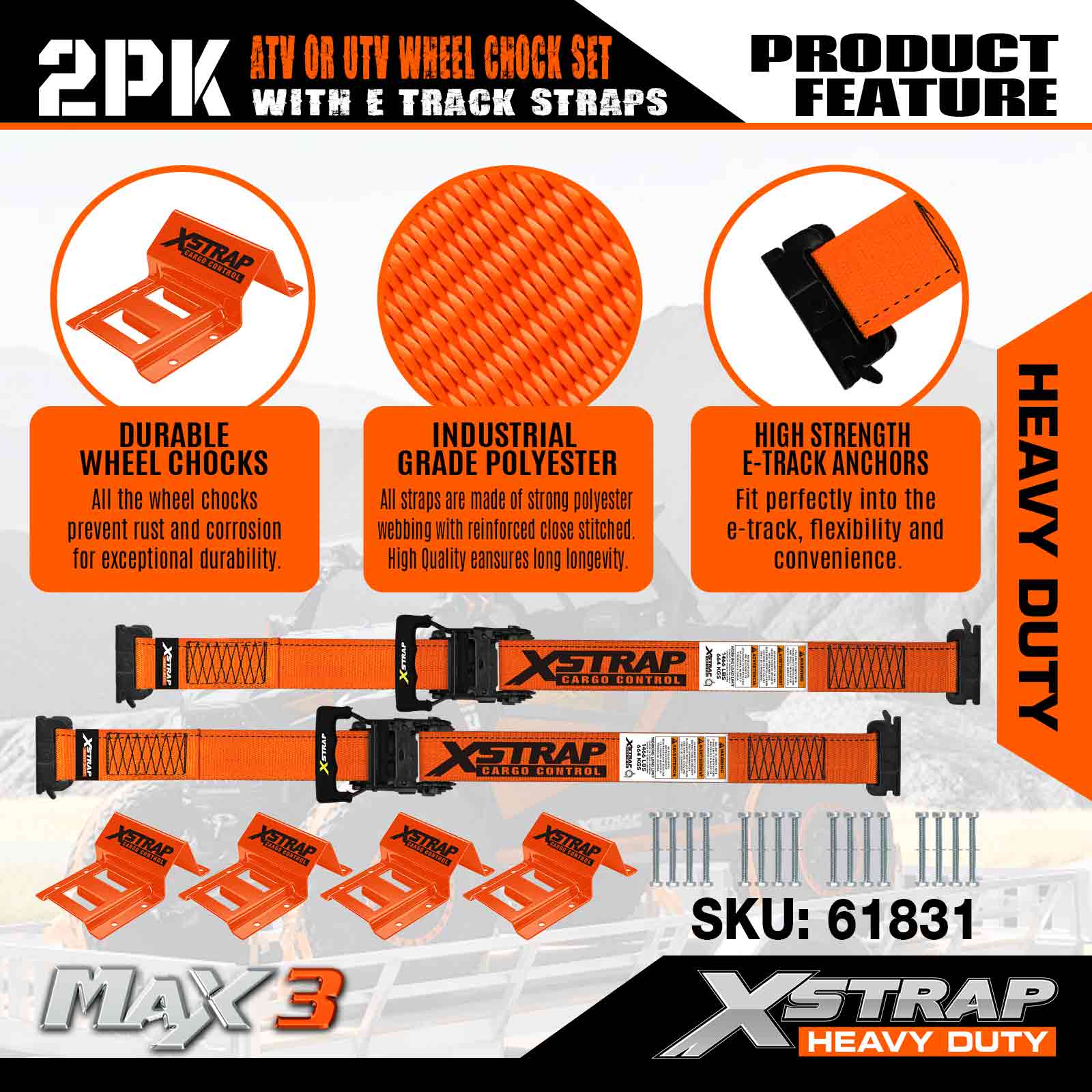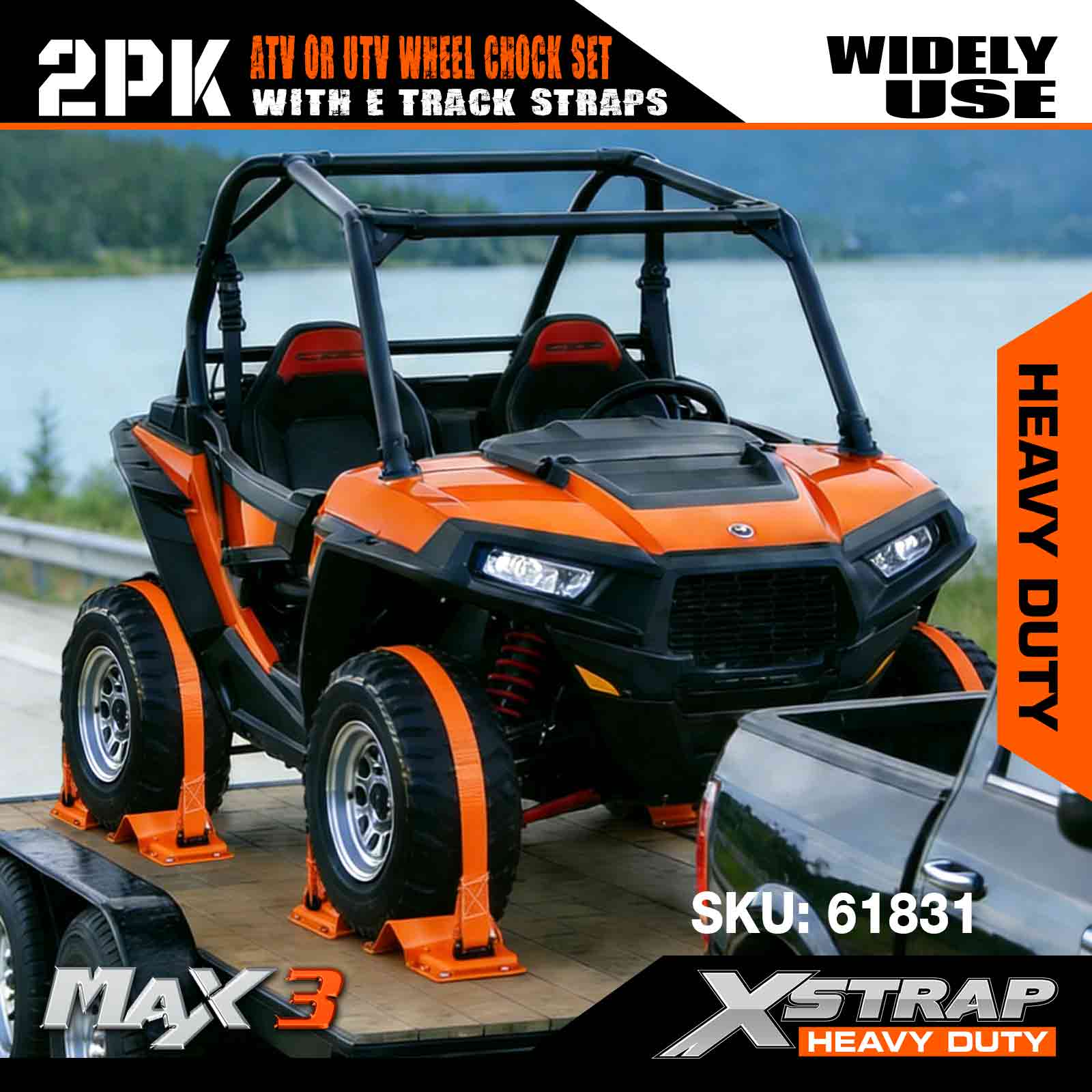 Xstrap UTV Vastzetset voor wielkeggen Breeksterkte van 4.400 lb (4) Ratelbanden voor aanhangerbanden voor zwaar gebruik (8) Wielkeggen - E-rupssysteem voor ATV, UTV, grasmaaier Vierwieler - Oranje