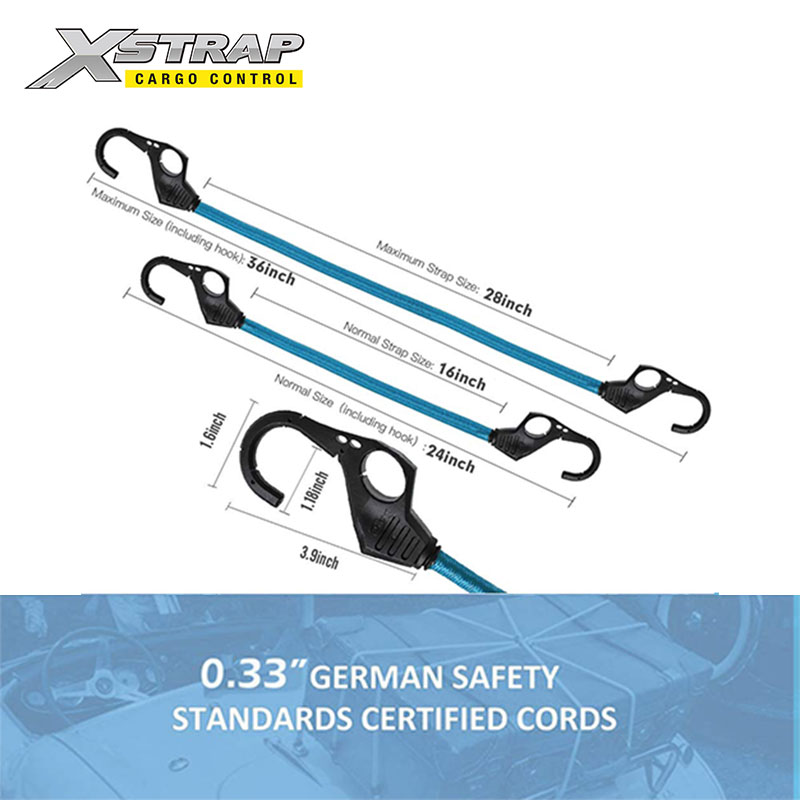 De bungeekoorden met vingergathaken, gemaakt van superieur UV-bestendig kruisgeweven rubber en latex, zullen niet dun slijten of breken bij dagelijks gebruik of verschillende klimaten.