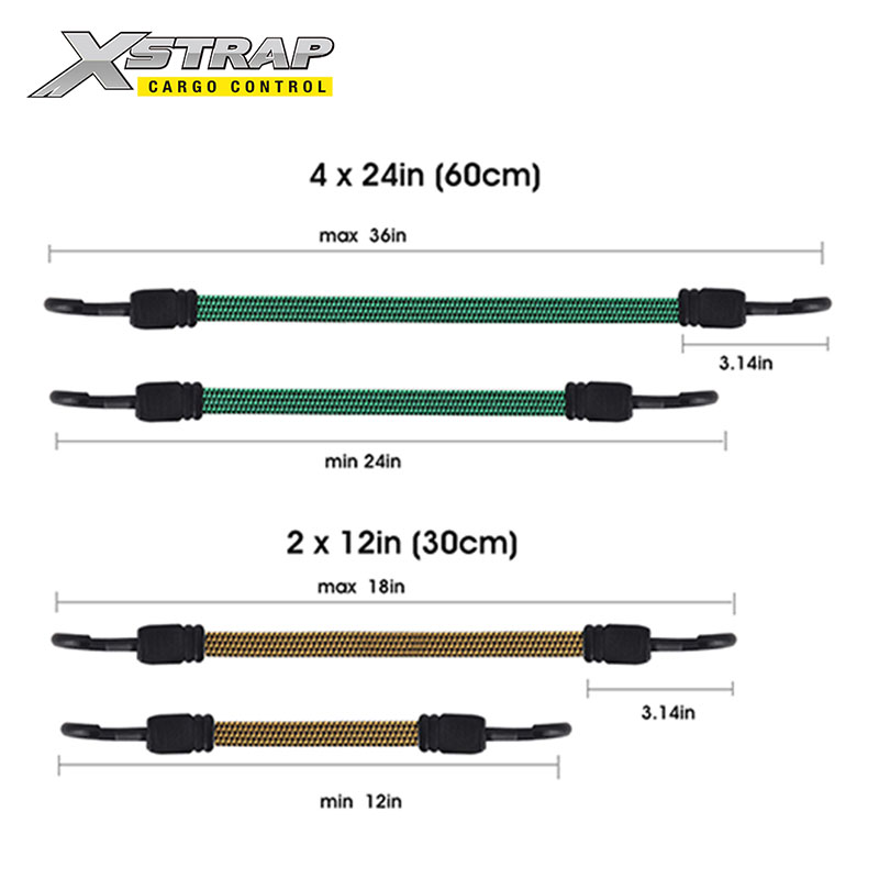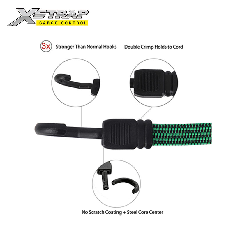 - De haken van platte bungeekoorden zijn 3x sterker dan een gewone haak. Het zijn robuuste koorden voor bagage, zeildoek, tent, boot, fiets en vrachtwagen. De bungeekoorden bieden betrouwbare en duurzame prestaties wanneer u deze ook gebruikt.