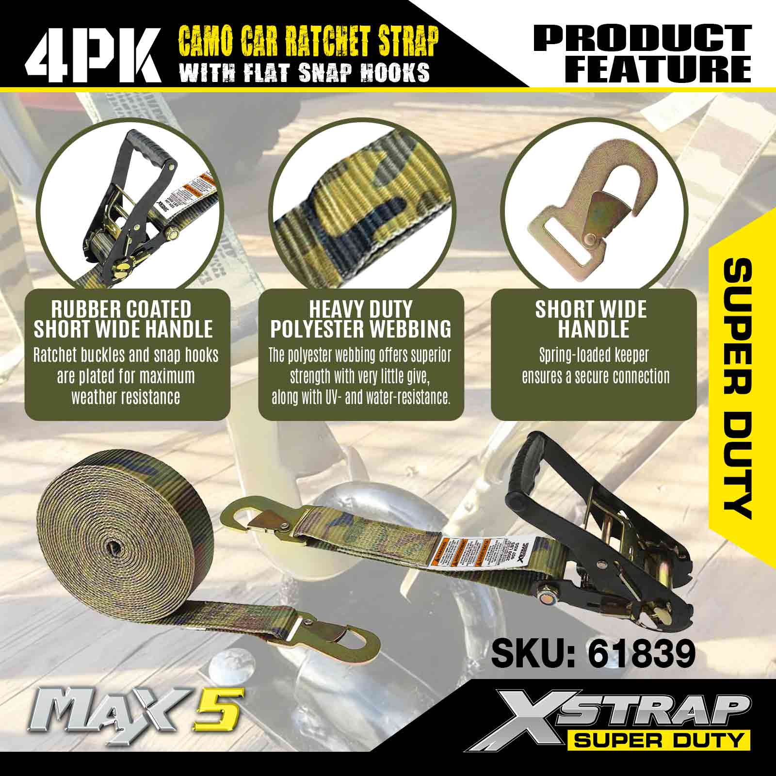 - WEERVEILIGE BESCHERMING - De riem van deze spanband is gemaakt van weerbestendig polyester. Deze band is veilig te gebruiken in de buurt van water en in directe UV-straling. De hardware van deze ratelriem is ter bescherming verzinkt.