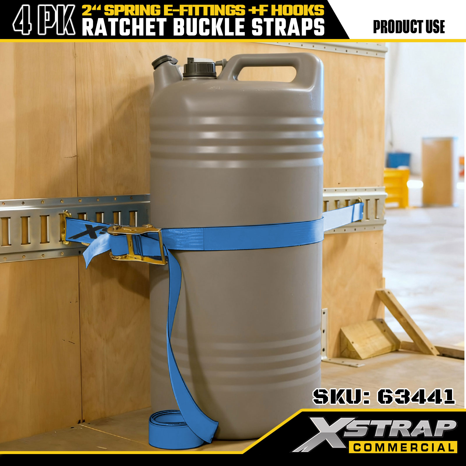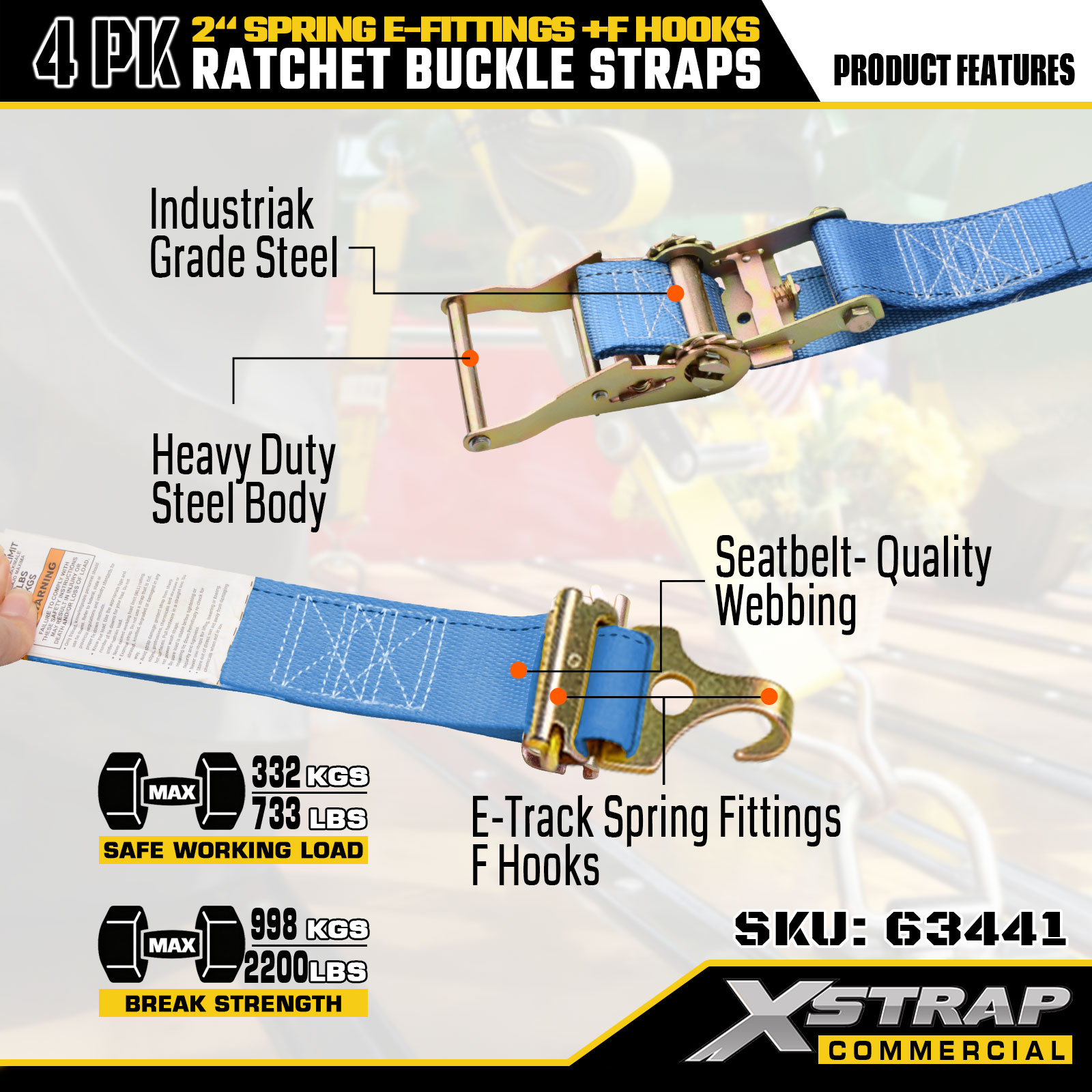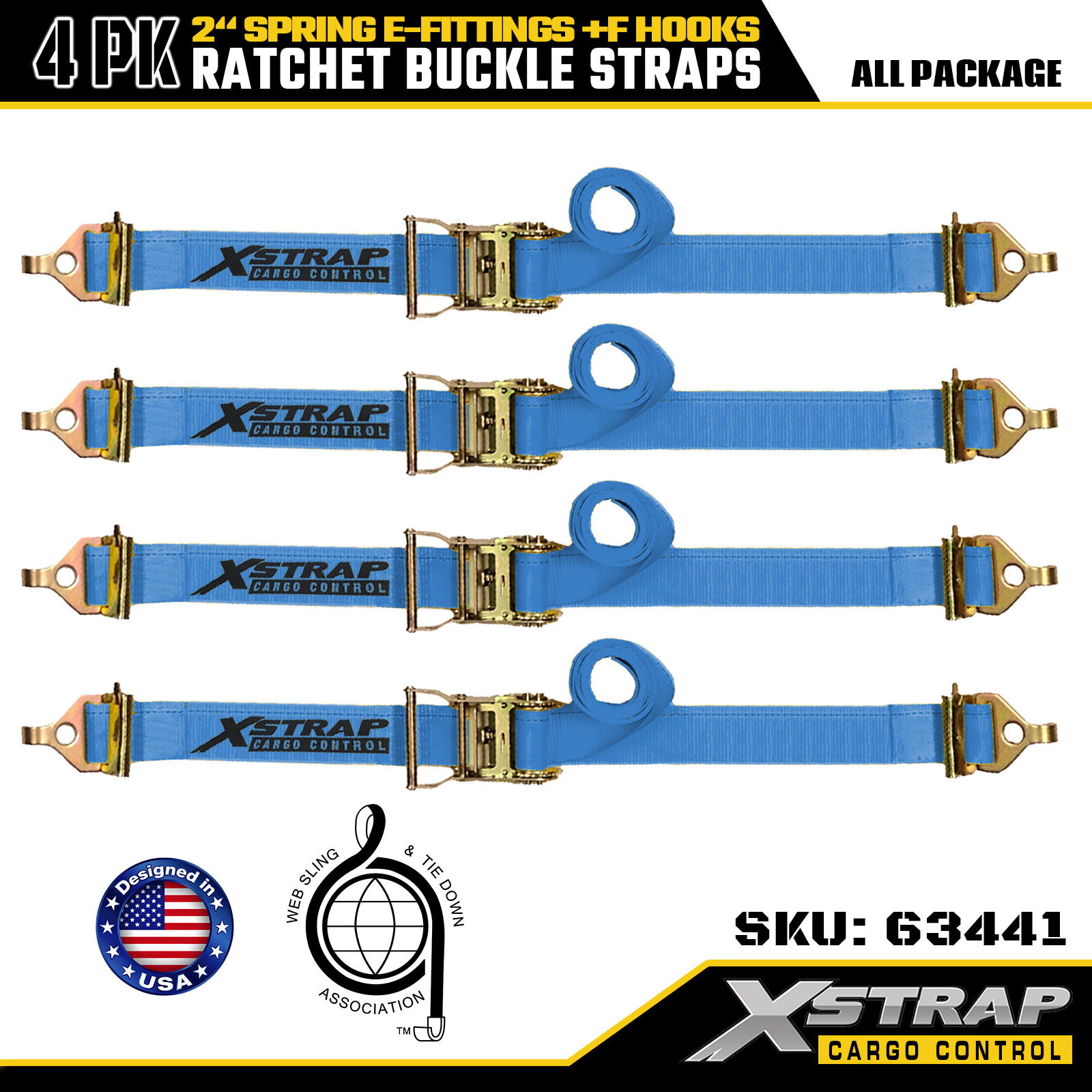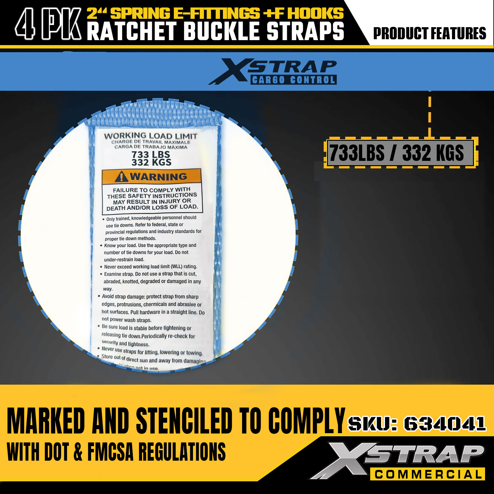 Xstrap 4-pack spanbanden met ratel, 2 "x 12 ' polyester met veer-E-fittingen en F-haken, 733 lbs SWL en 332 lbs breeksterkte voor vrachtwagens, verhuizingen en algemeen vrachtvervoer