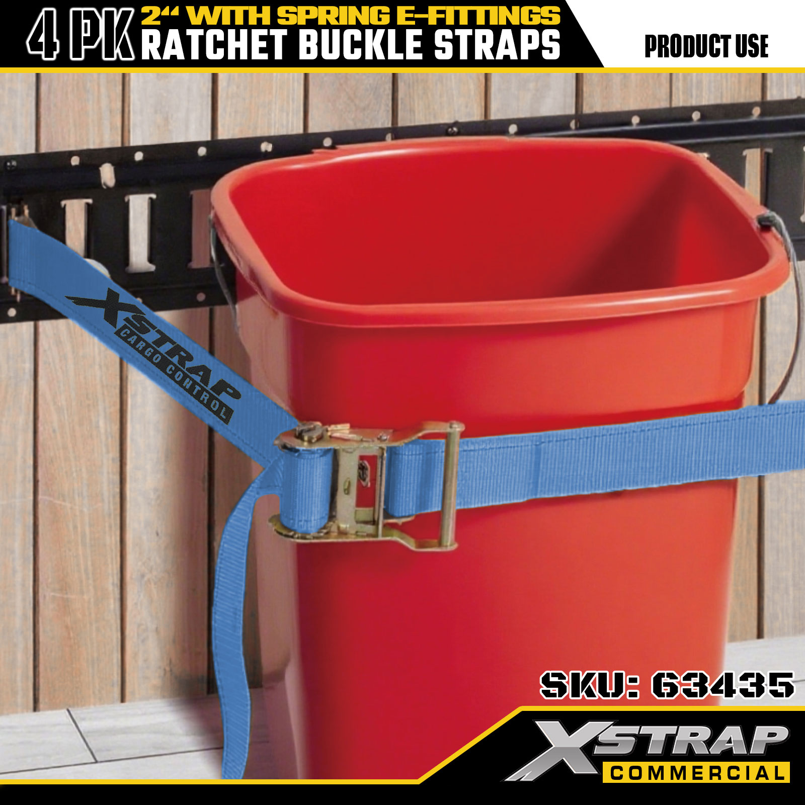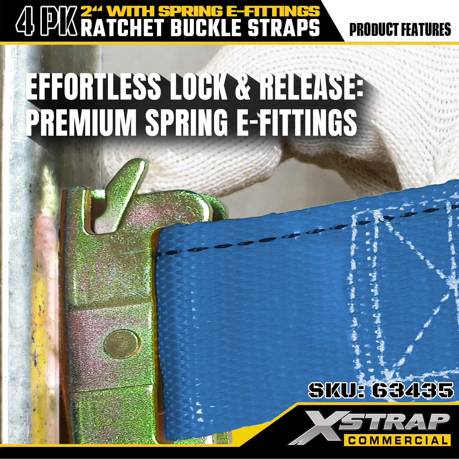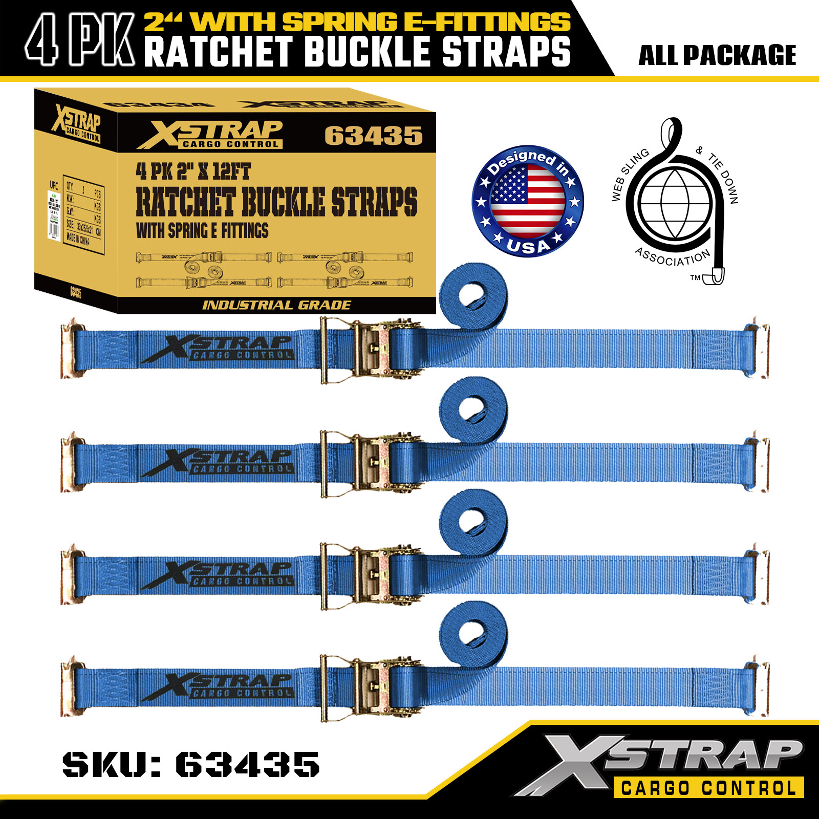Xstrap 4-pack spanbanden met ratel, 2" x 12' polyester spanbanden voor lading met E-koppelingen met veer, 1467 lbs veilige werklast (SWL) en 4401 lbs breeksterkte, voor vrachtwagens, maaiers, ATV's