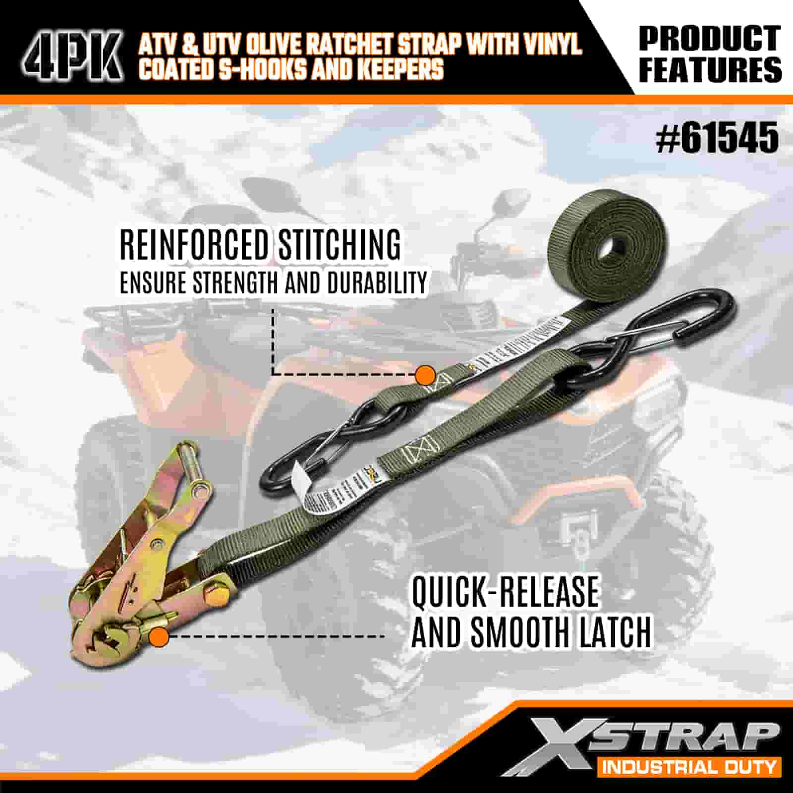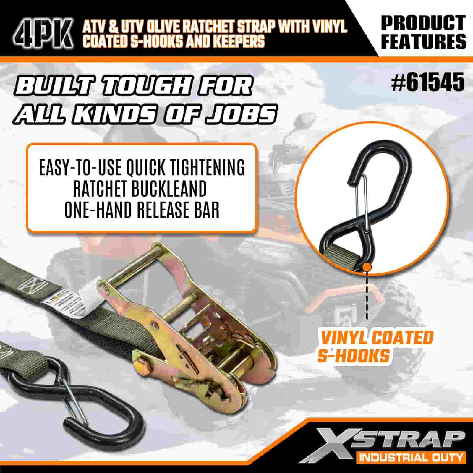 - Vergrendel het en vergeet het: deze spanbanden zijn ontworpen om te voldoen aan strenge wereldwijde veiligheidsnormen en houden uw ATV of UTV op zijn plaats door modder, sporen en ruw terrein. U hoeft uw lading niet meer halverwege de reis te controleren; uw uitrusting blijft van begin tot eind veilig.