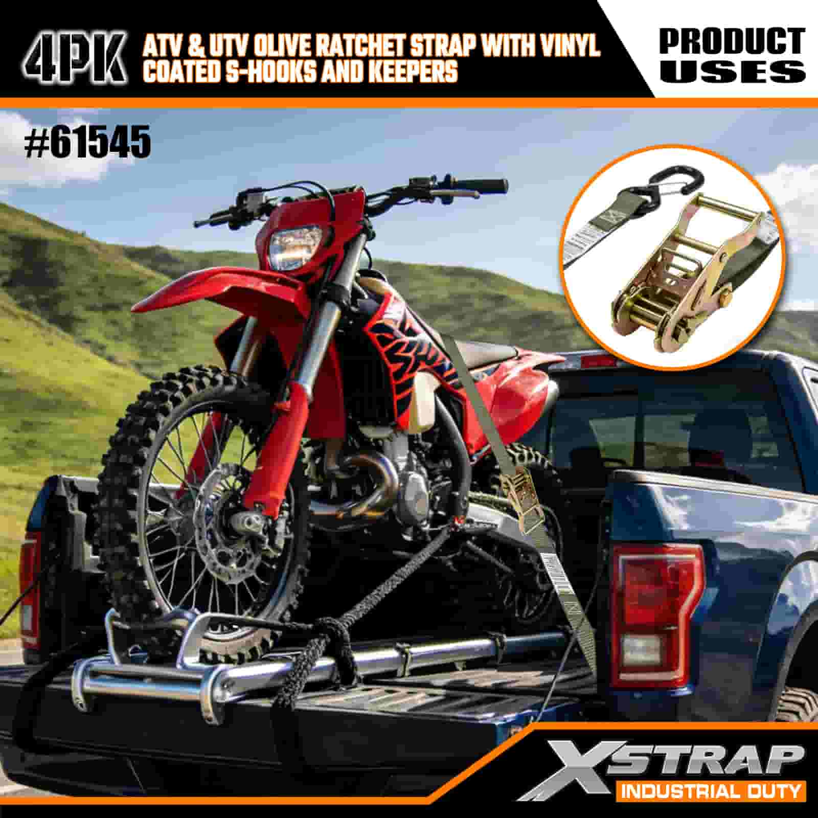 - Ontworpen voor offroad-avonturen: of je nu met je UTV de paden op gaat of een crossmotor naar het circuit sleept, deze riemen maken van stressvol laden een snelle, betrouwbare stap. Het onopvallende olijfkleurige ontwerp past bij je uitrusting, zodat je gefocust blijft op de rit.