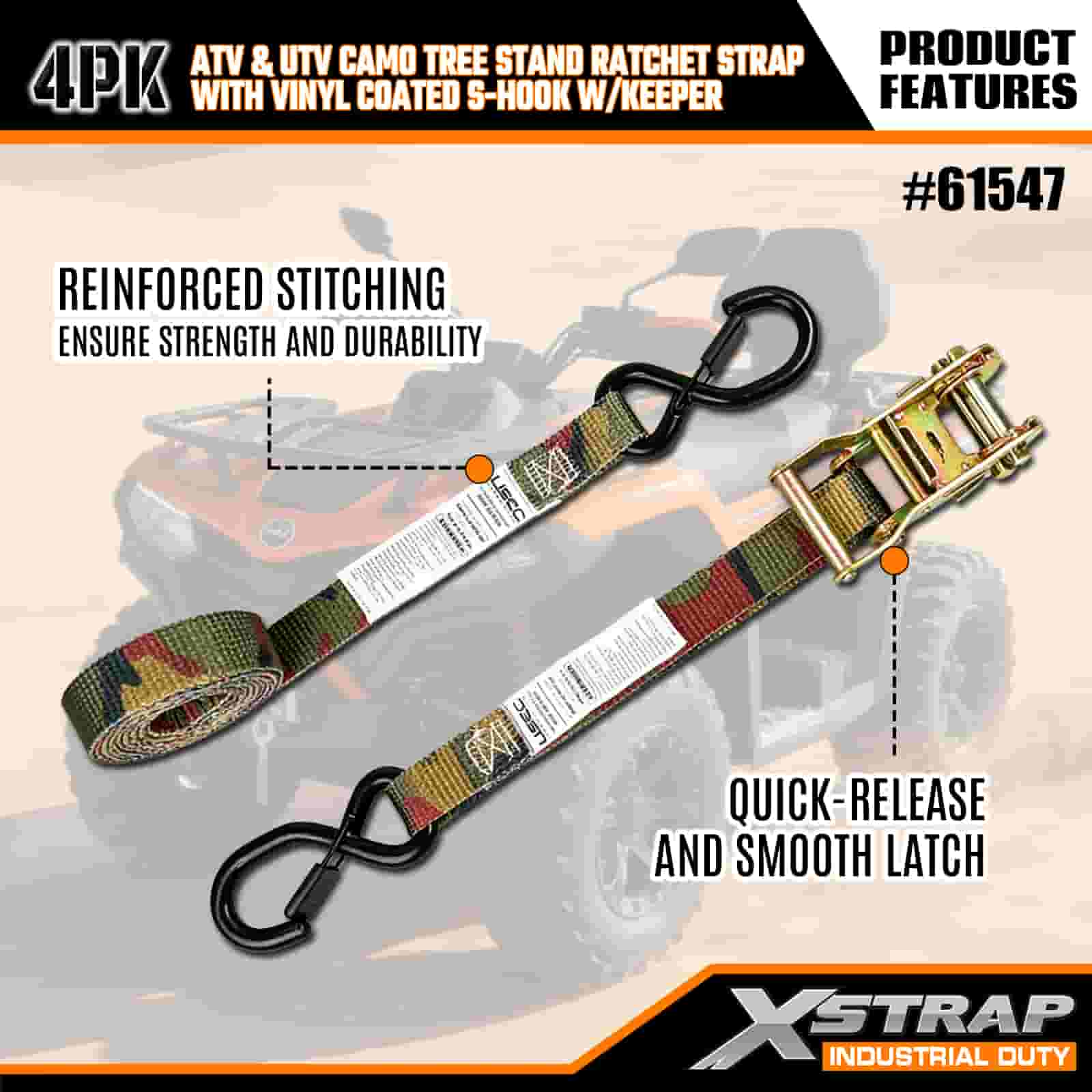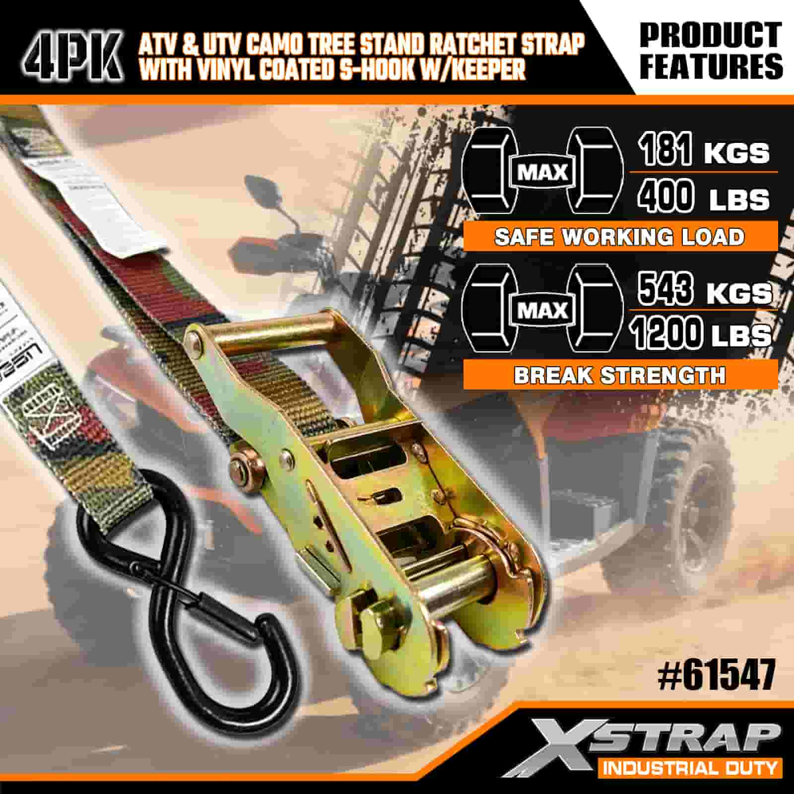 - 4-pack voor volledige dekking: deze set bevat 4 riemen, waardoor je genoeg hebt om zowel de voor- als achterkant van je ATV of UTV vast te zetten. De lengte van 2,5 meter is geschikt voor vrachtwagenbedden, bevestigingspunten voor aanhangwagens en ankers voor boomstandaards, zodat u elke keer een stabiele grip krijgt.
