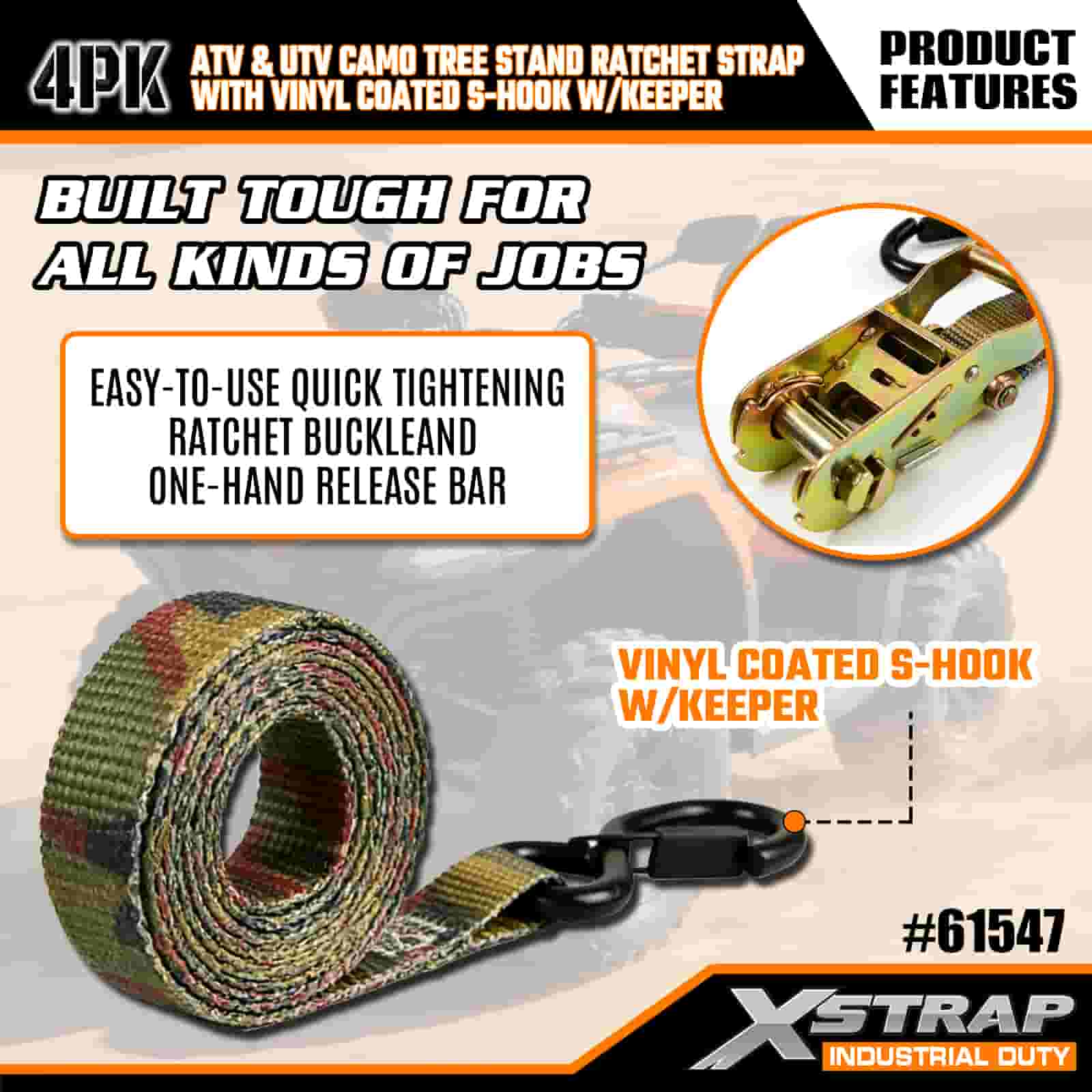 - Gebouwd voor outdoor-avonturen: of je nu een boomstandaard naar je jachtplek sleept of een motorfiets vastzet voor een weekendrit, deze riemen maken van stressvol laden een snelle, betrouwbare stap. Het camo-ontwerp zorgt ervoor dat je uitrusting onopvallend blijft, zodat je gefocust blijft op de jacht of op het pad.
