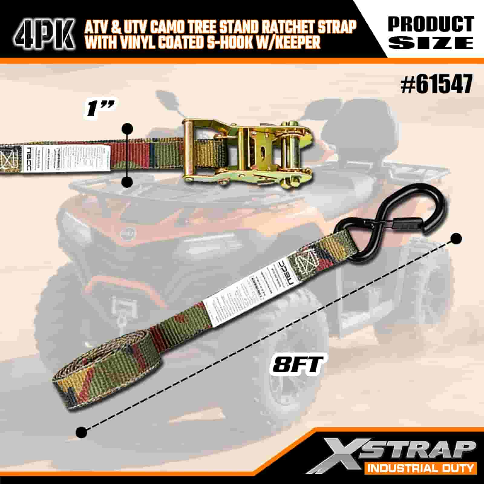Xstrap 4PK Ratel-ratelriem met vinyl gecoate veiligheids-S-haken, 1" x 8' polyester spanband Ratelband, 400 lbs capaciteit ladingssjorriemen met veiligheids-S-haken voor aanhangwagen, aanhanger met plat bed, skiboot, kleine auto, zwaar materieel.
