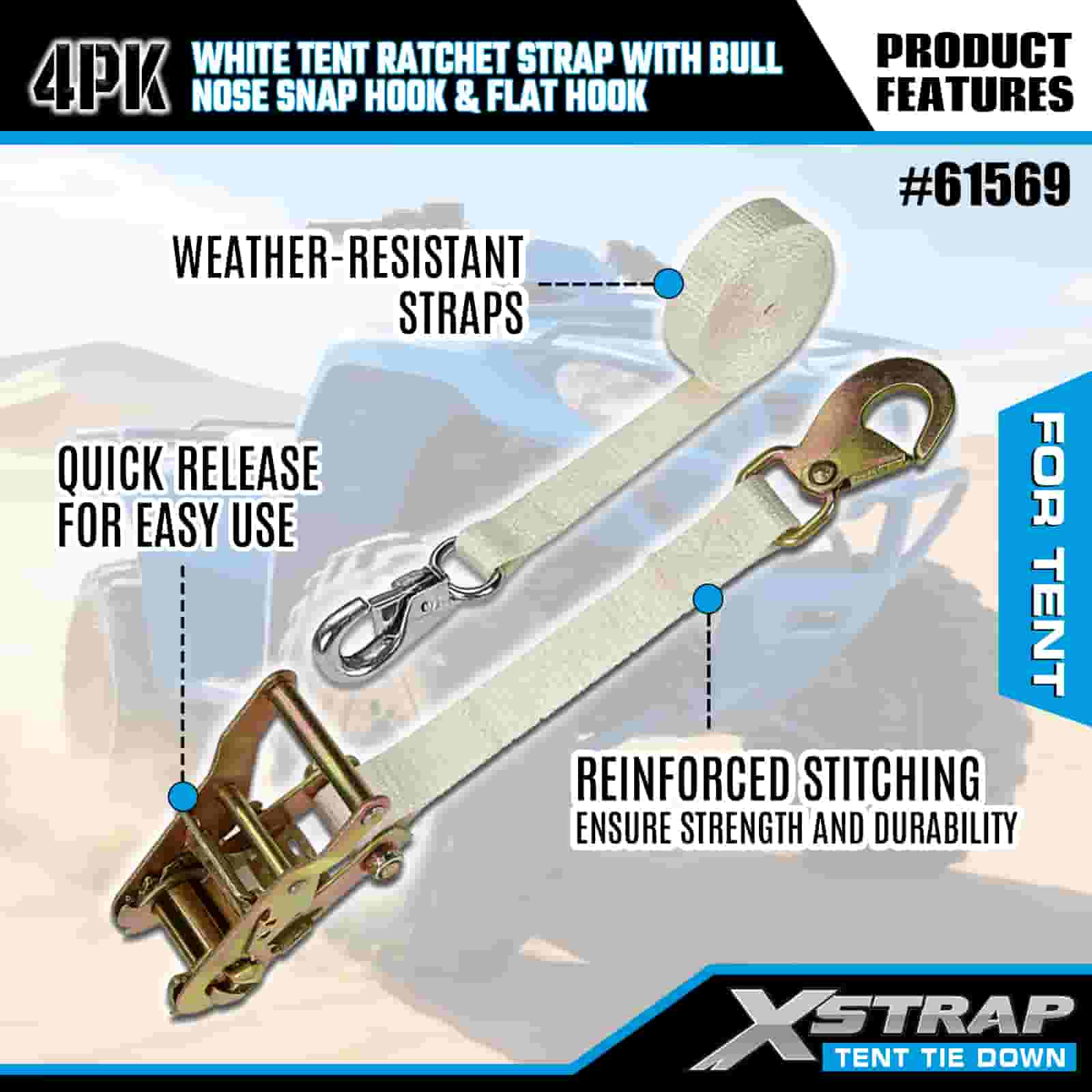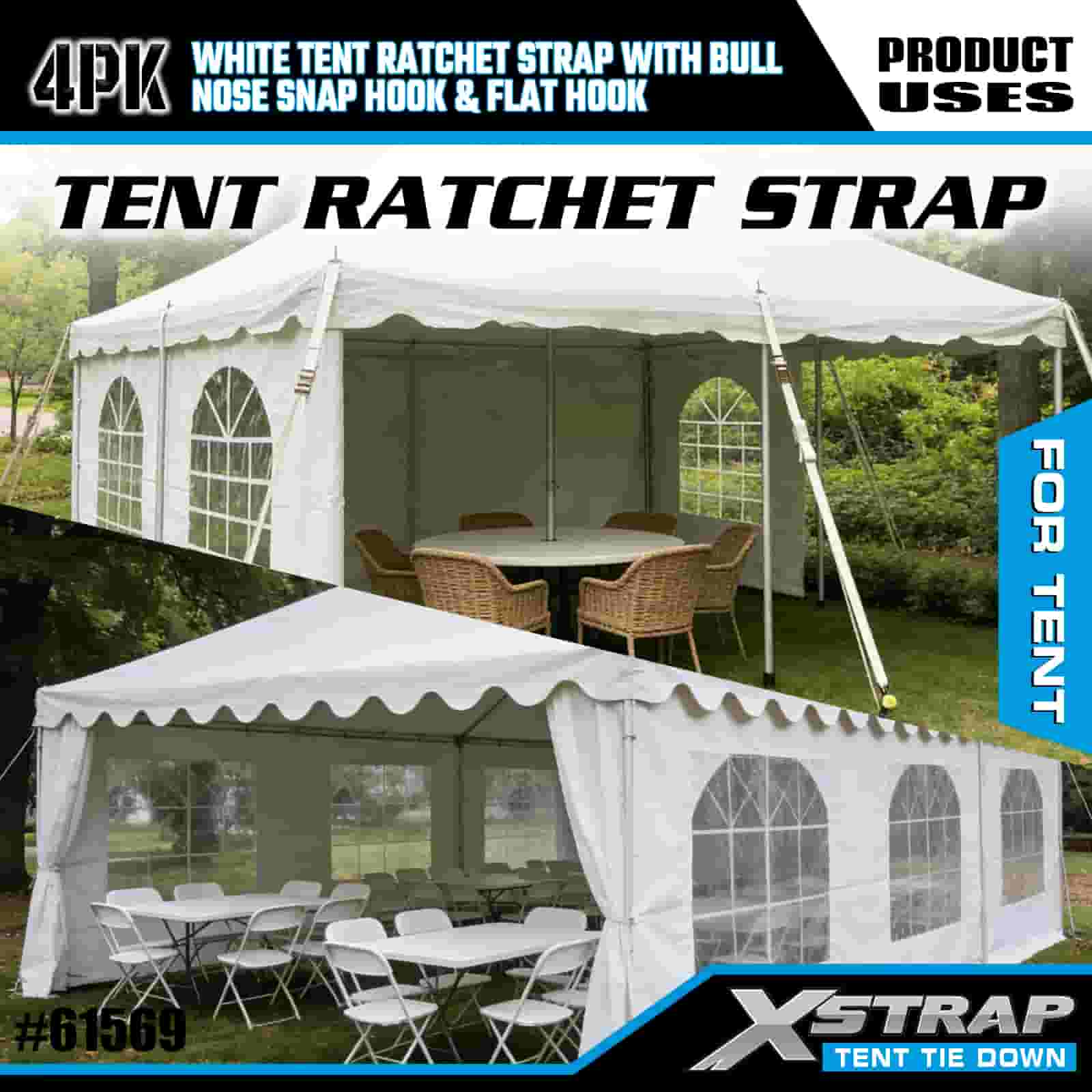 - Evenement- en kampeeranker, gebouwd voor sterke wind: Dit 4-pack spanbanden is ontworpen om grote evenementententen, luifels en feesttenten te beveiligen en biedt compromisloze grip, zelfs in winderige omstandigheden. Gesteund door de 20 jaar expertise van XStrap op het gebied van vrachtcontrole, blijft uw schuilplaats verankerd ondanks regen, wind en intensief gebruik.