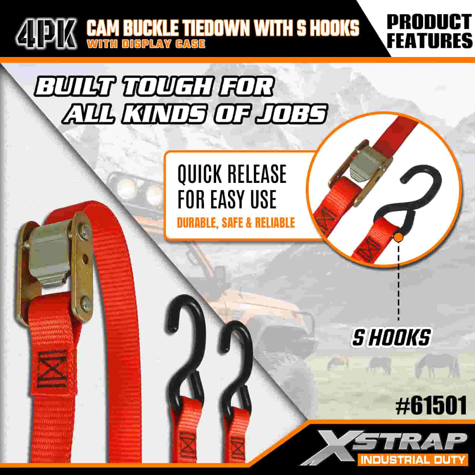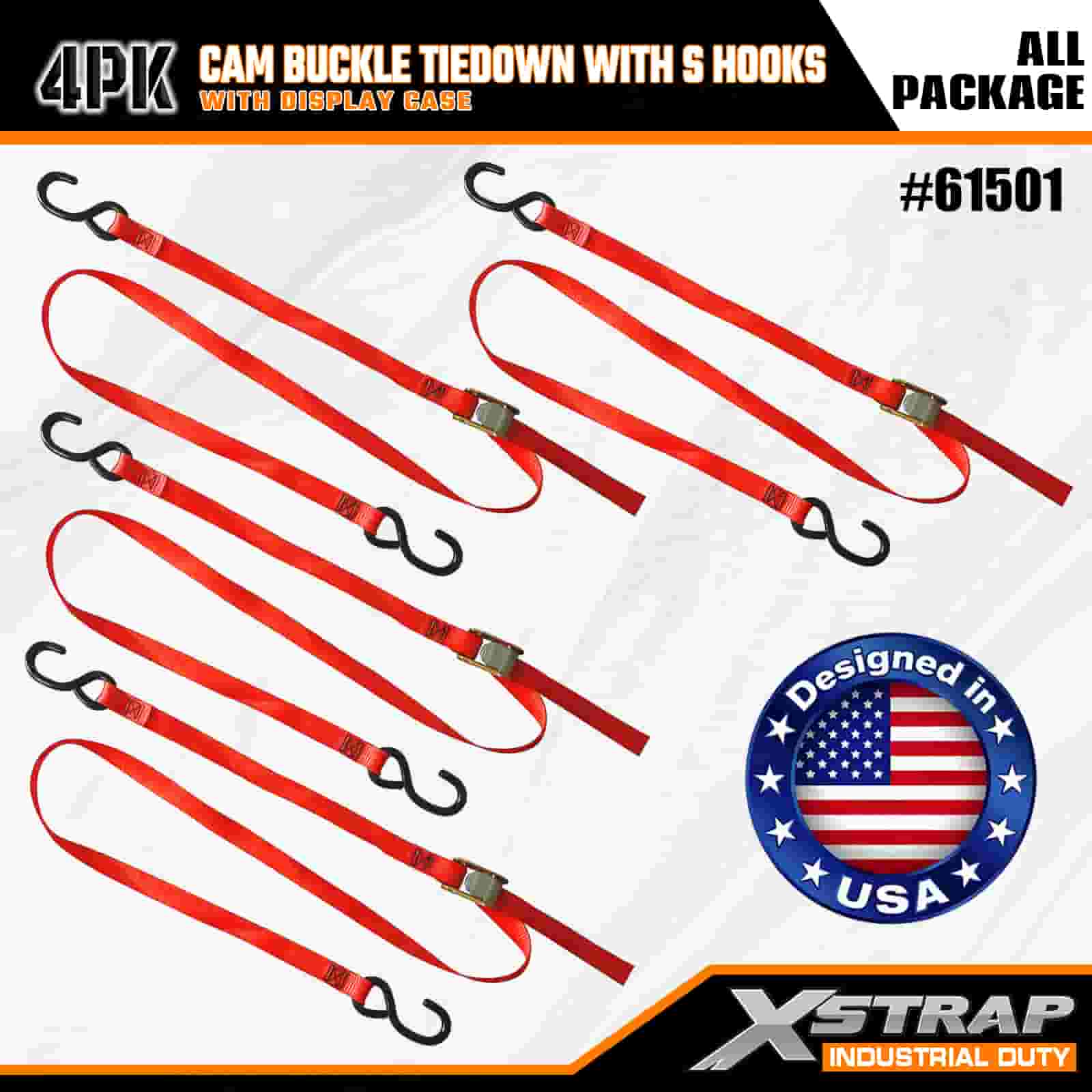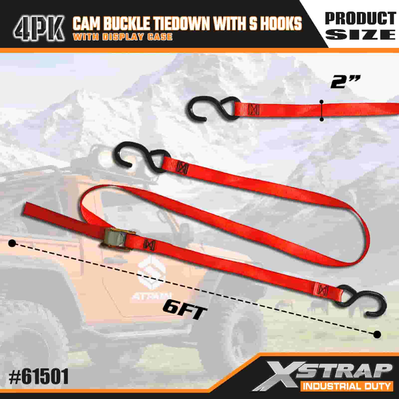 2" x 6' 4PK Cam Buckle Tie Down met S-haken