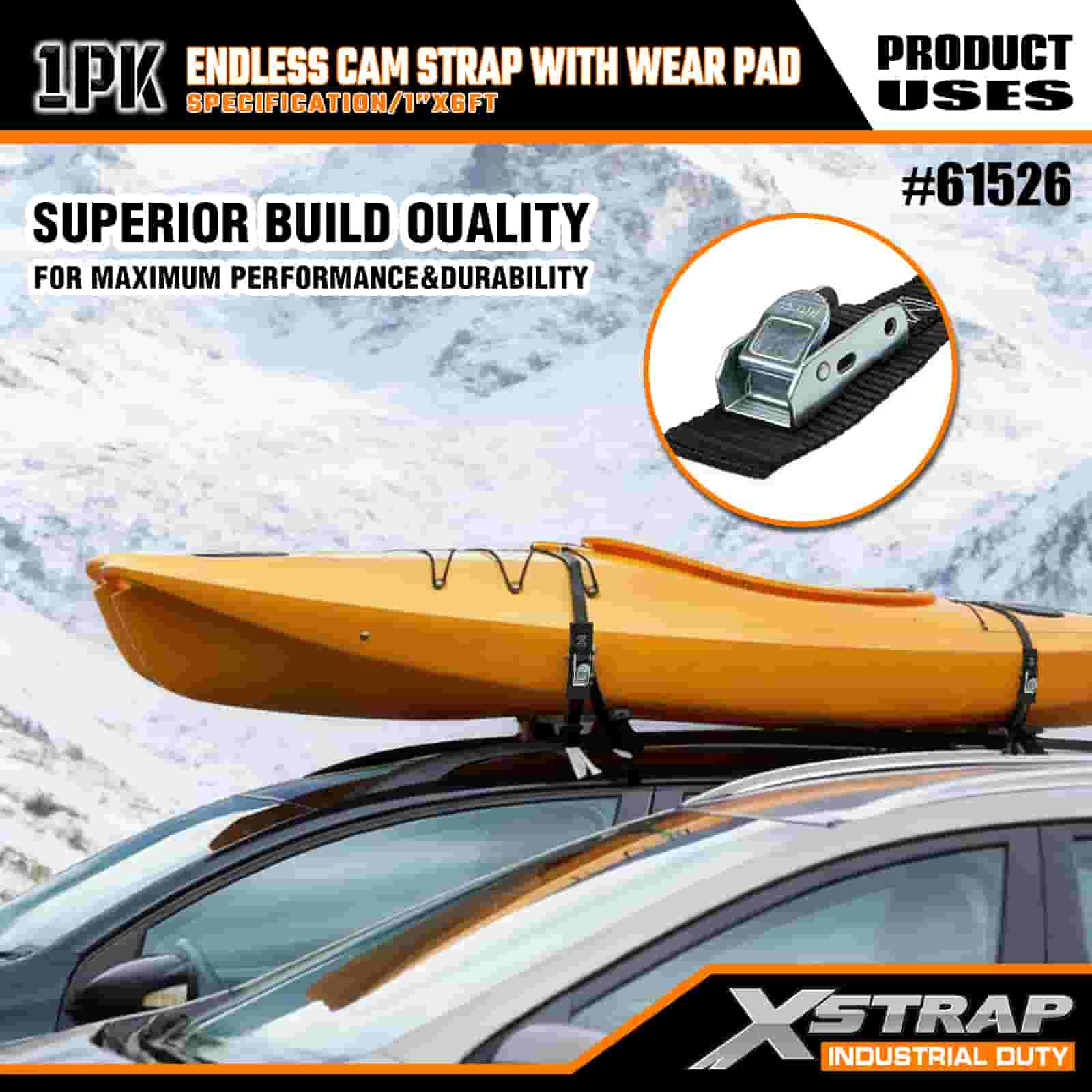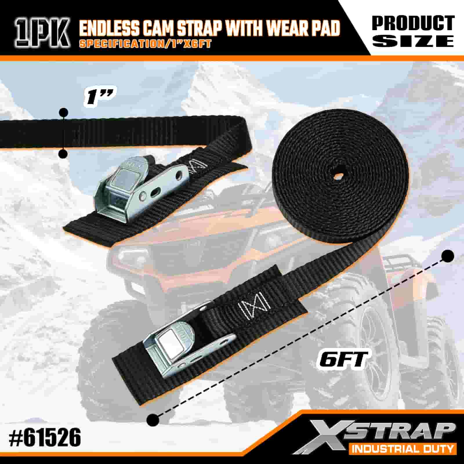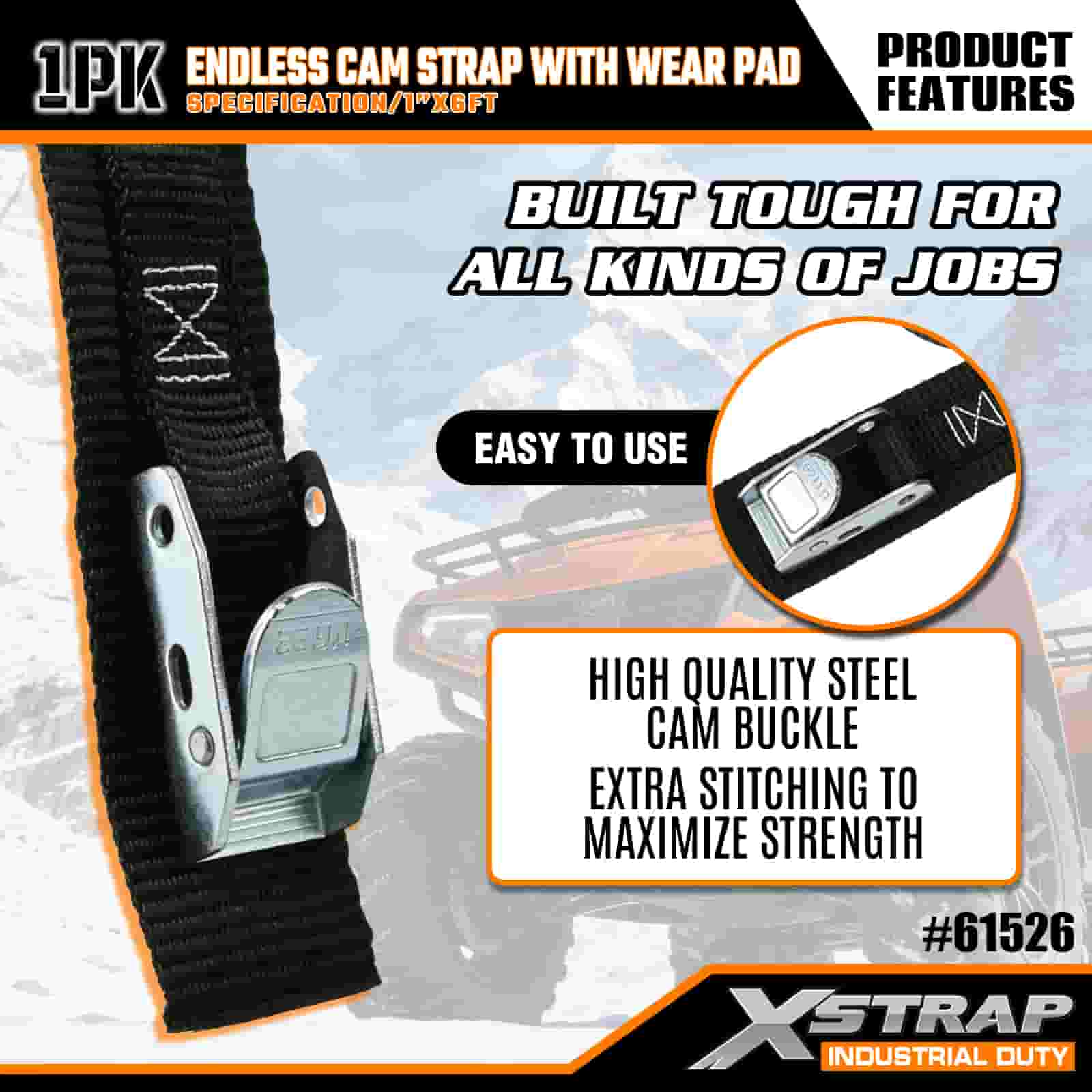 Xstrap Eindeloze nokkenriem met slijtkussen, 1" x 6' polyester vastzetriem Trek-cam-gespriem, 400 lbs capaciteit ladingspanbanden voor de serieuze professional om vrachttrailer, dieplader, skiboot, kleine auto vast te zetten.