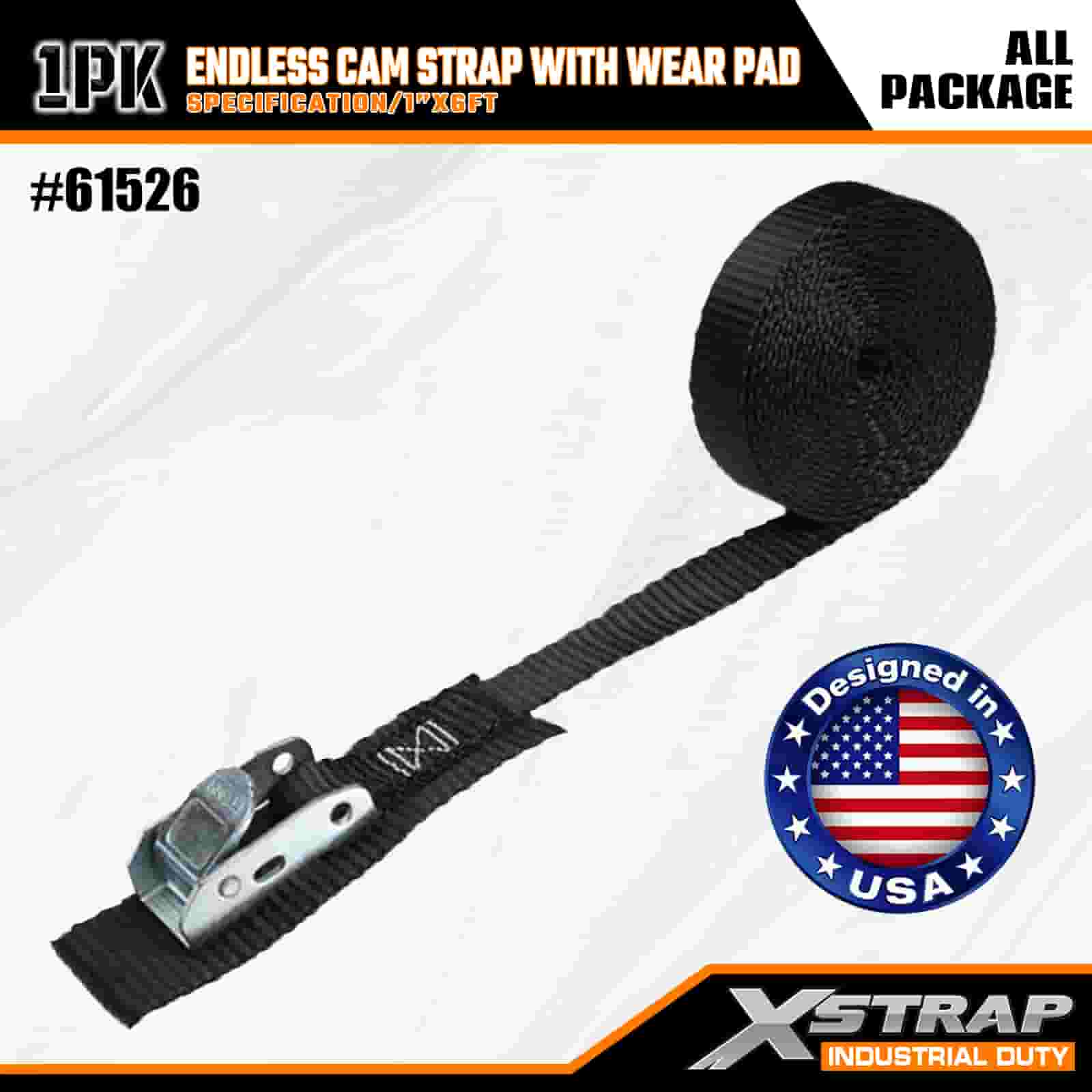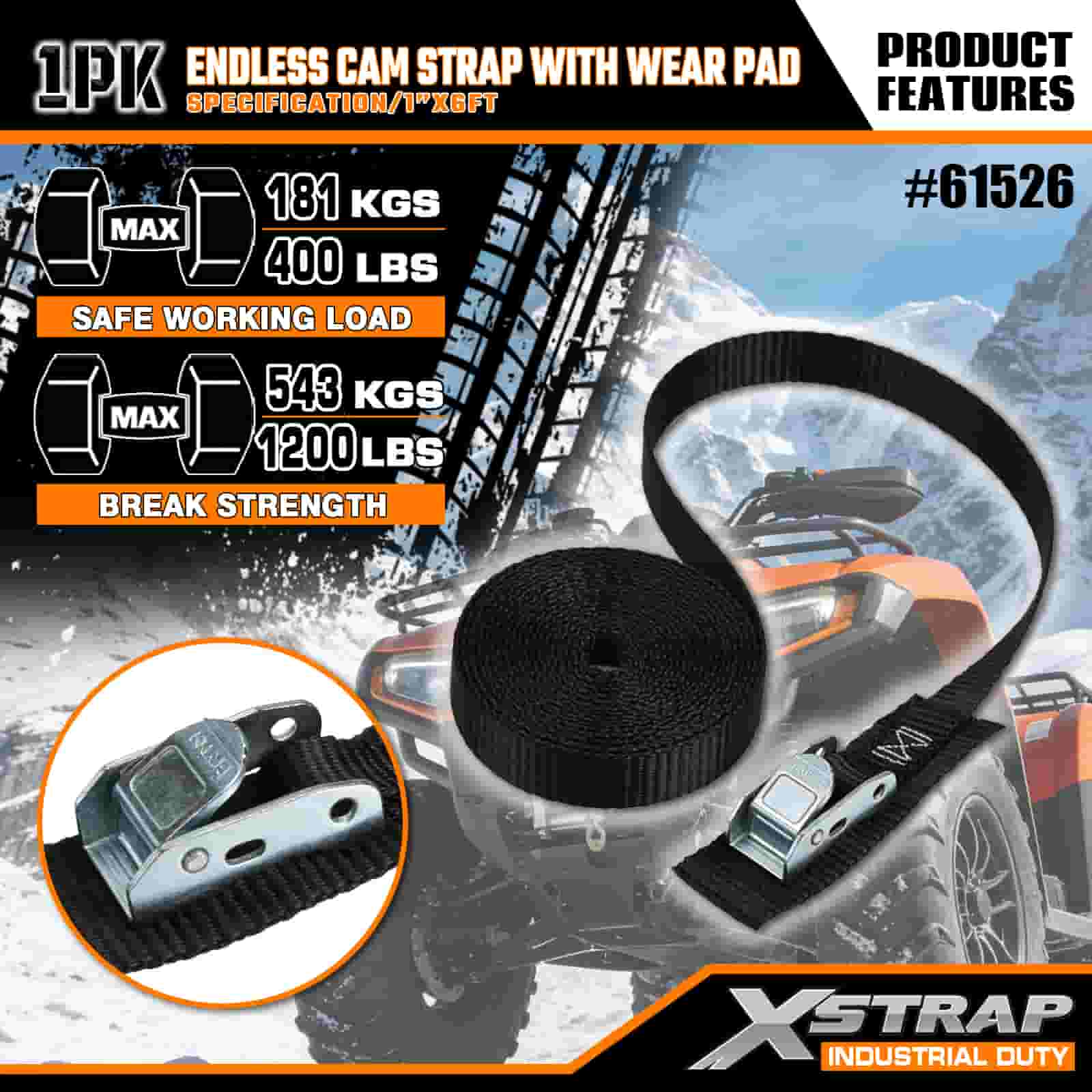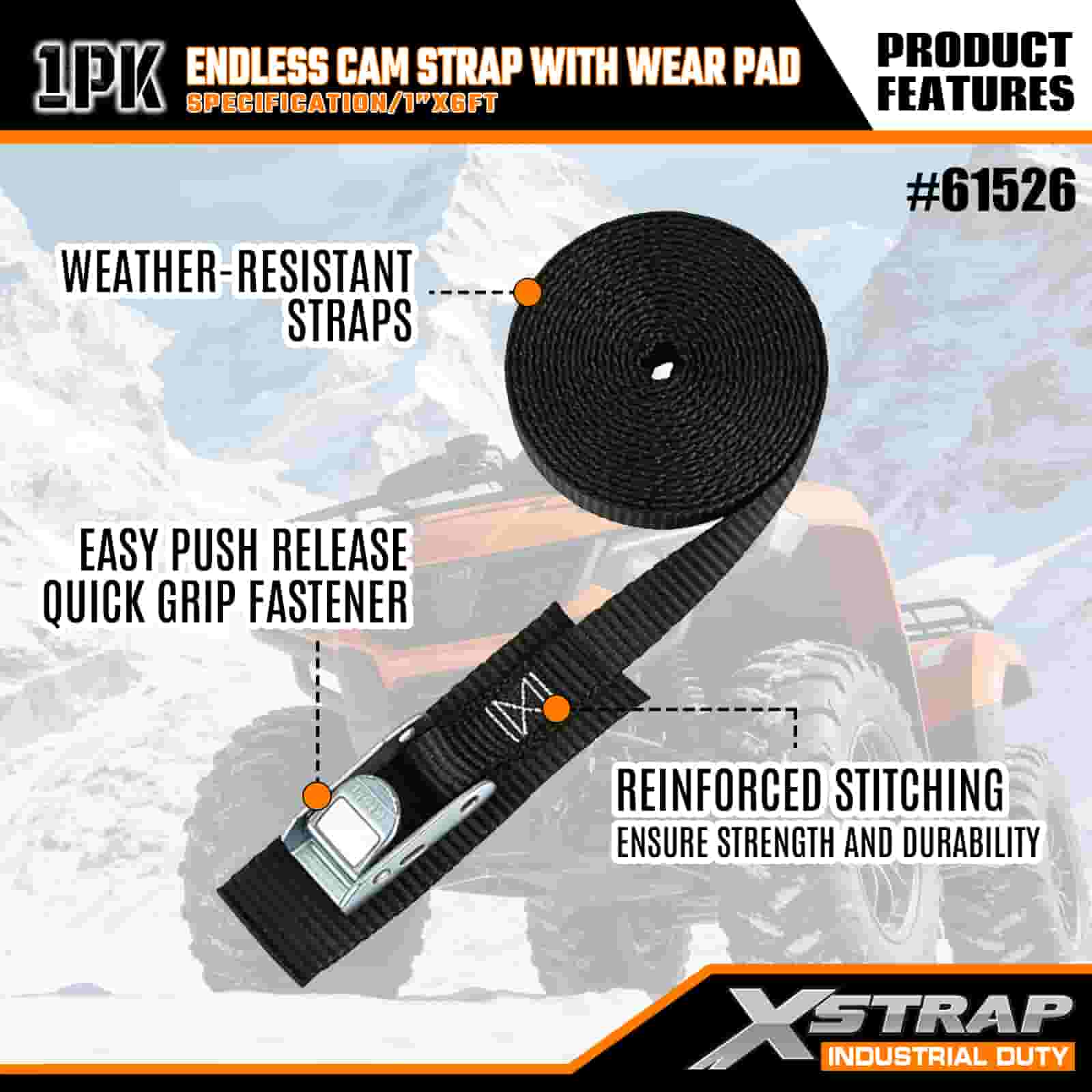 Xstrap Eindeloze nokkenriem met slijtkussen, 1" x 6' polyester vastzetriem Trek-cam-gespriem, 400 lbs capaciteit ladingspanbanden voor de serieuze professional om vrachttrailer, dieplader, skiboot, kleine auto vast te zetten.