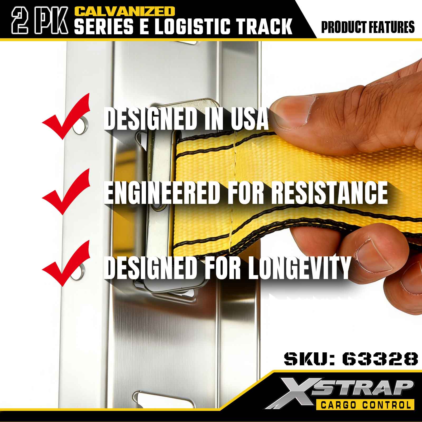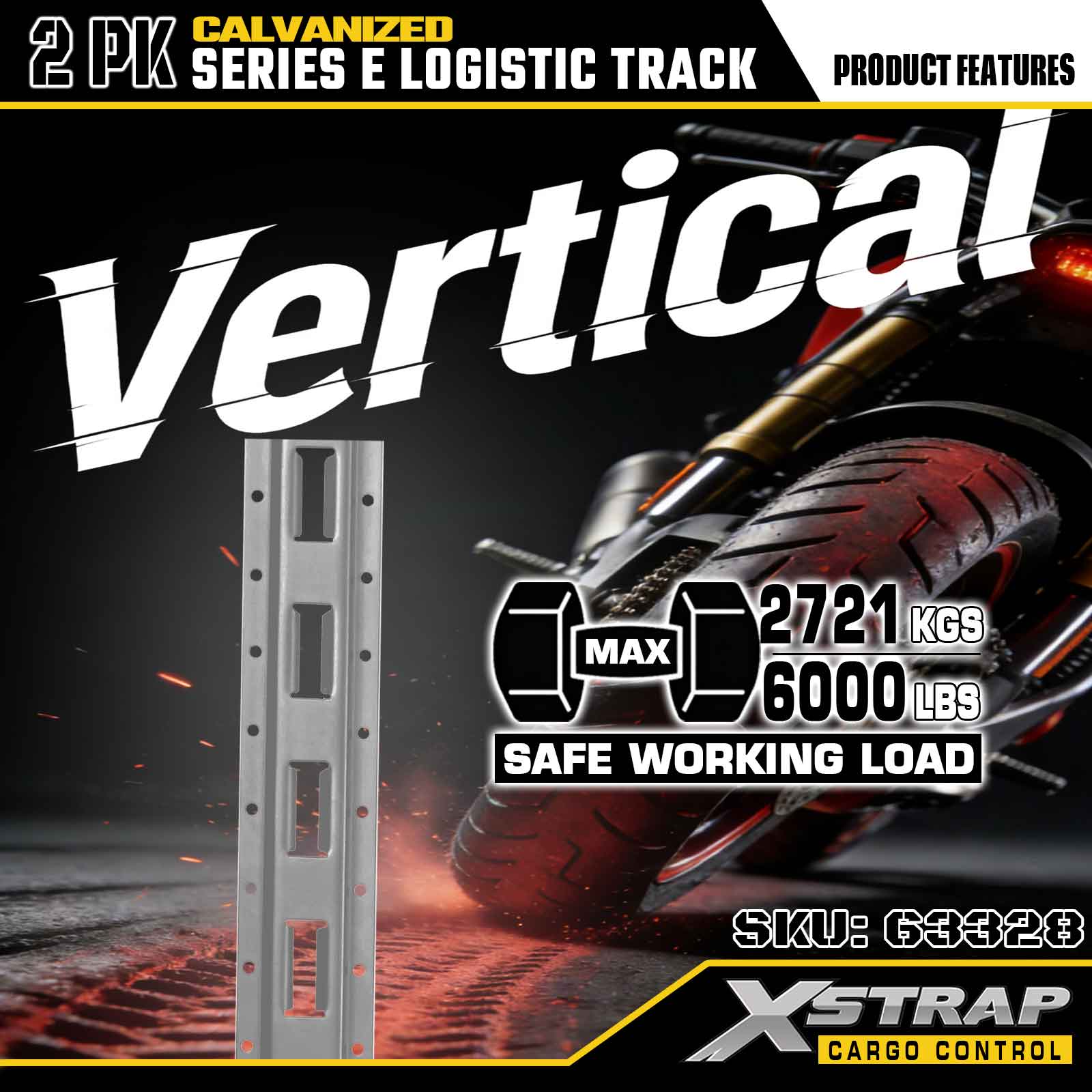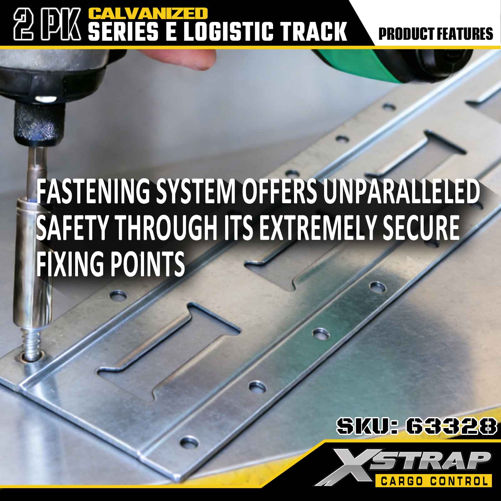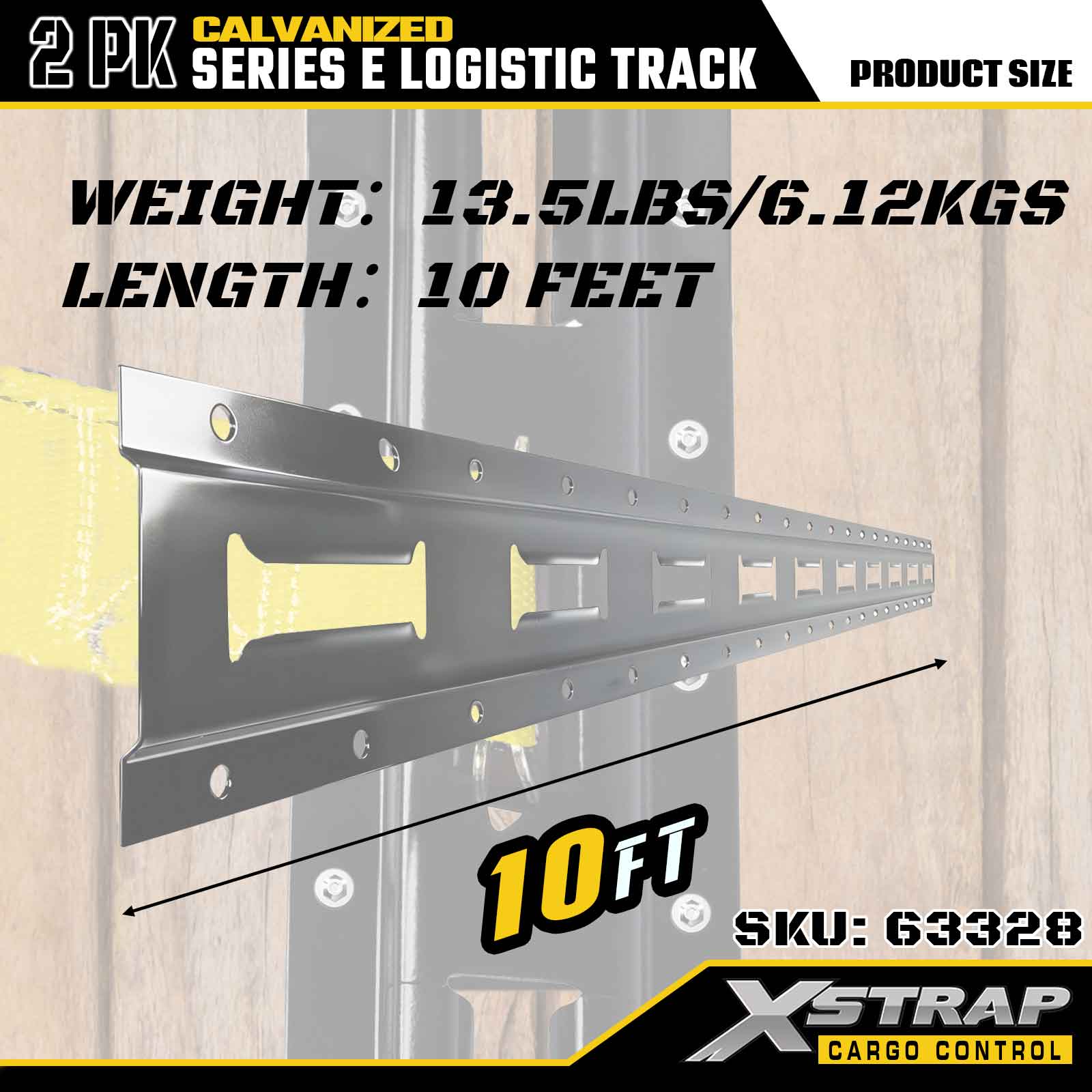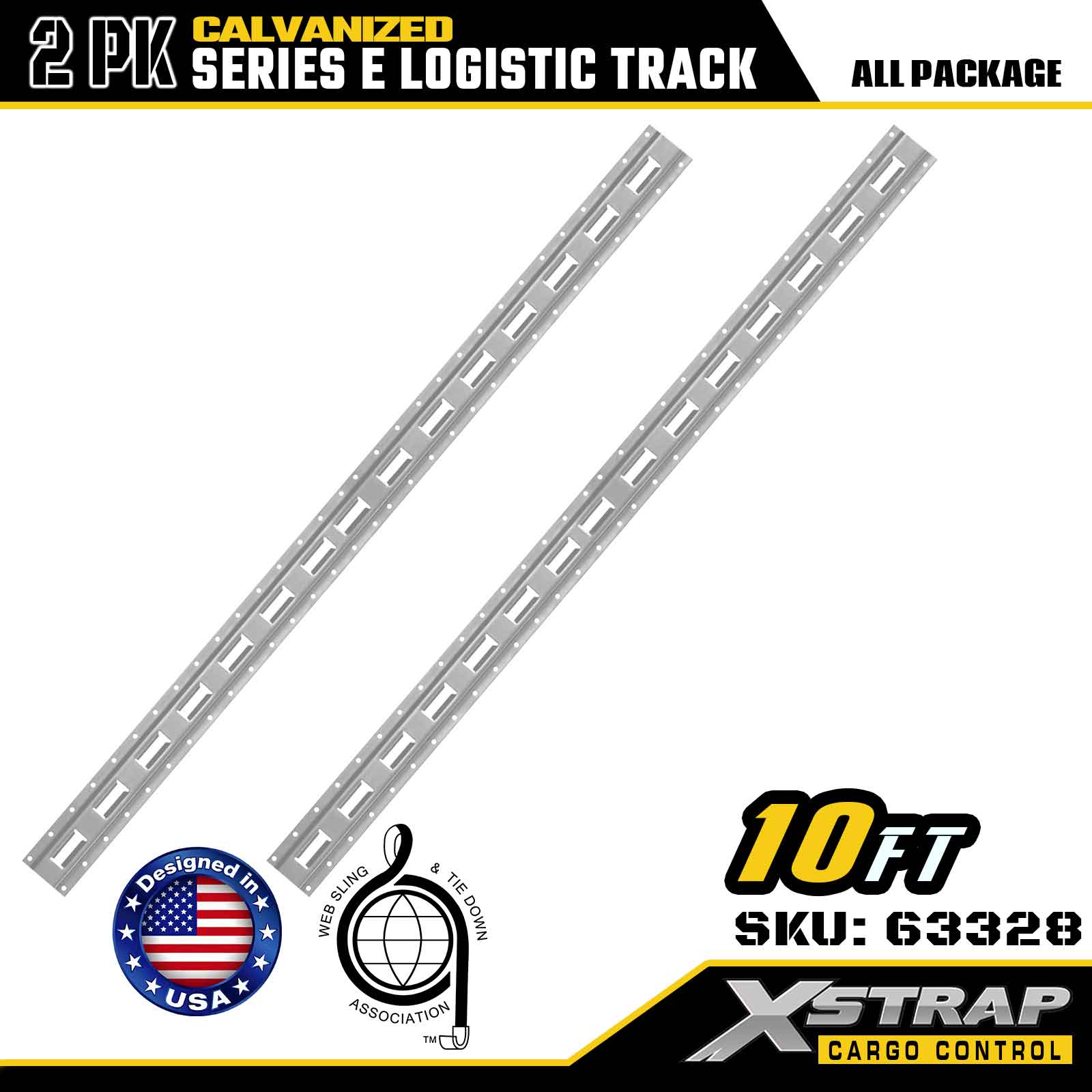 Xstrap 63328 10ft gegalvaniseerde zilveren E-track bevestigingsrail - 12-gauge staal met gegalvaniseerde afwerking, 6000LBS laadvermogen, 2-pack voor ladingzekering