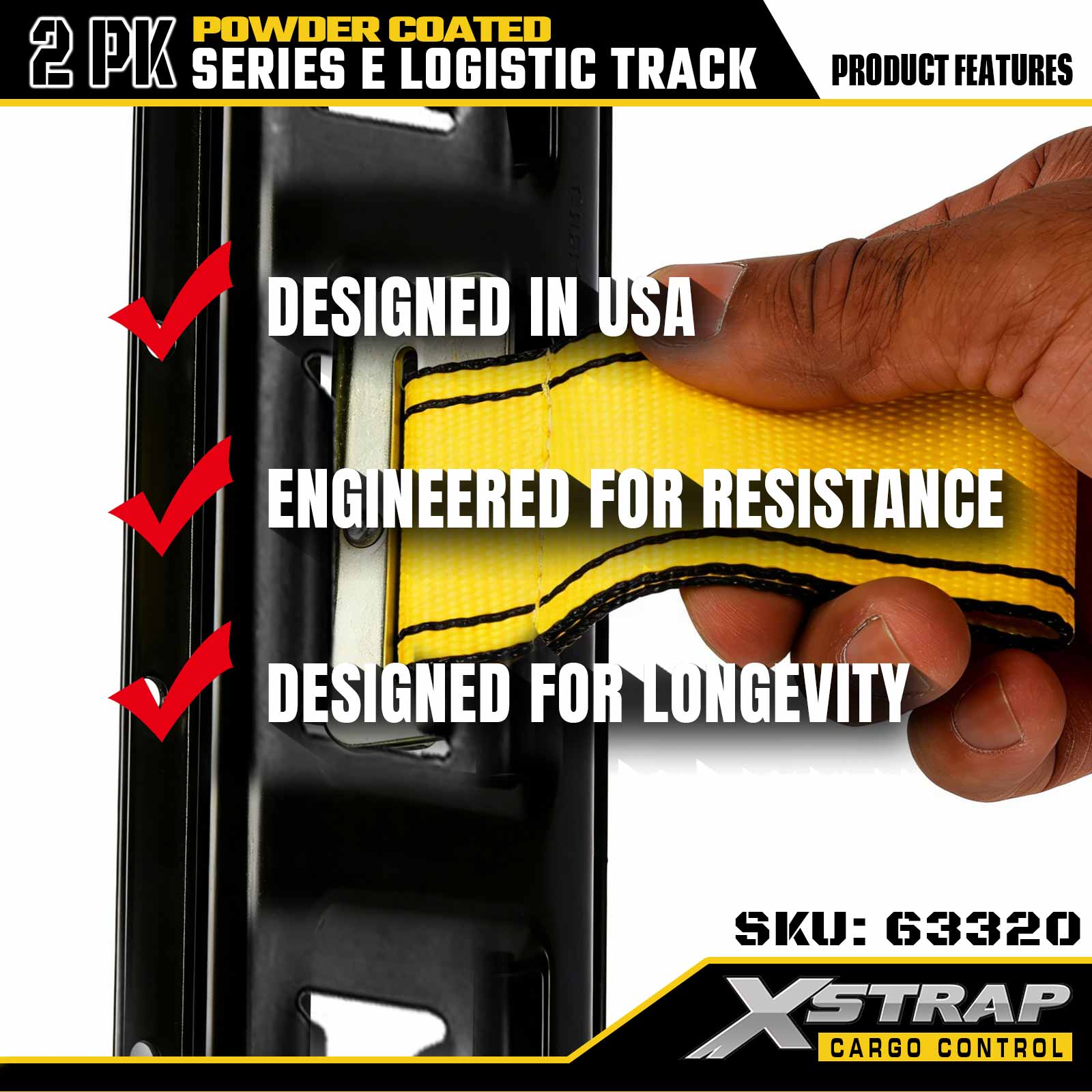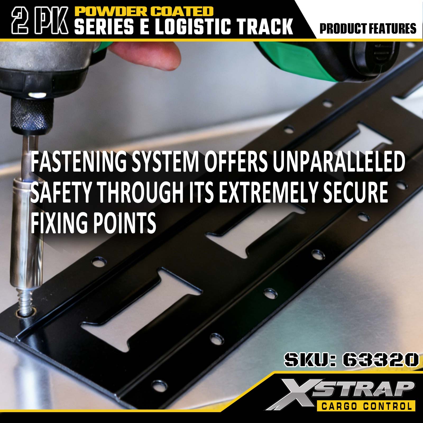 - Stabiele vrachtverankeringsbasis - Stevig ankerpunt voor E-Track-compatibele spanbanden, laststangen en bevestigingsaccessoires. Beveiligt op efficiënte wijze dozen, huishoudelijk meubilair, elektrische apparaten en diverse stukgoederen in vrachtwagens, bestelwagens en aanhangwagens tijdens verhuizing, verzending en opslag.