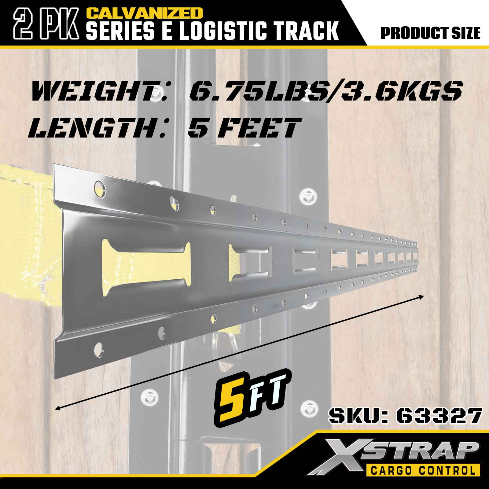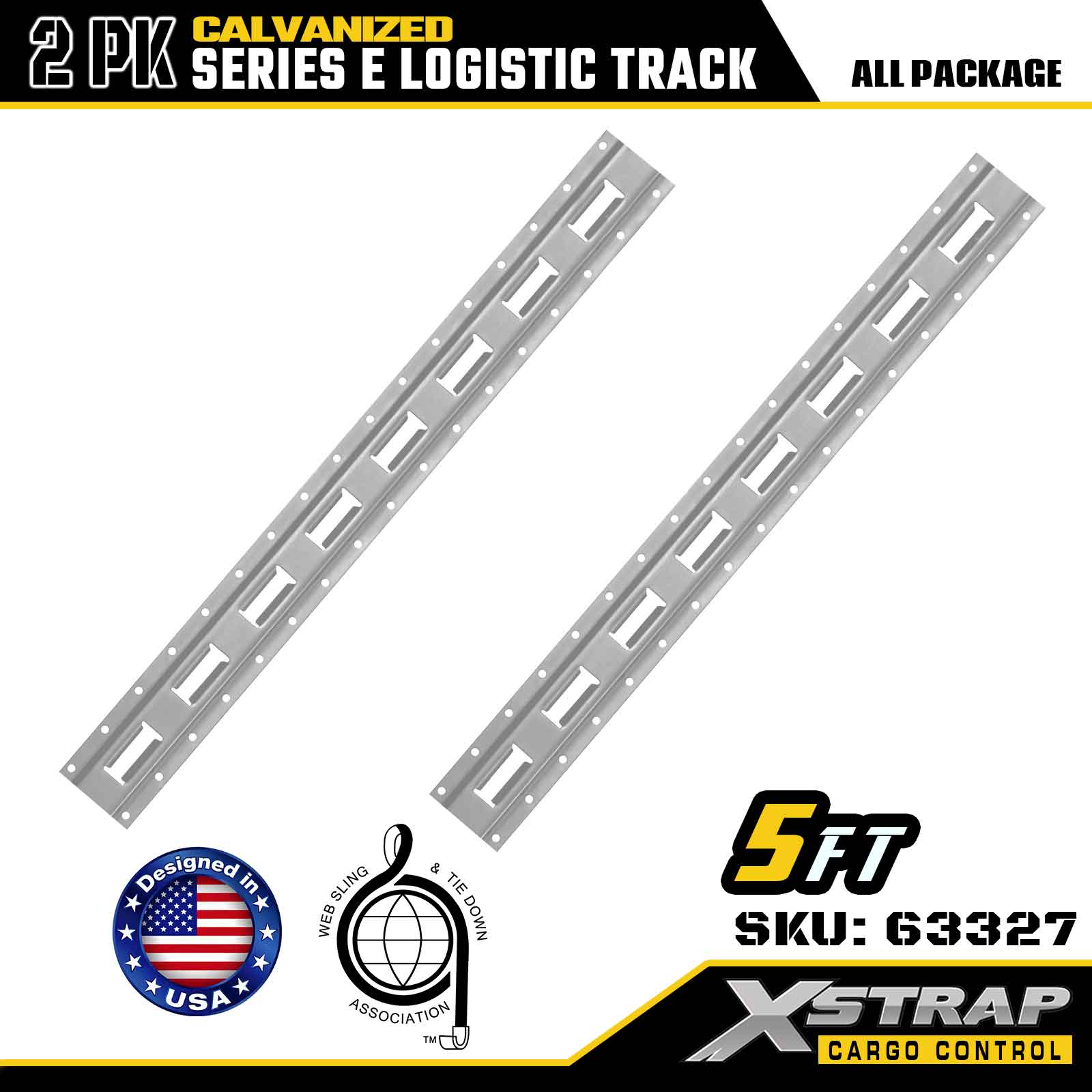 Xstrap 63327 1,5 meter gegalvaniseerde zilveren E-Track laadvastzetrail - 12-gauge staal met thermisch verzinken, 6000LBS gewichtscapaciteit, 2-pack voor ladingzekering