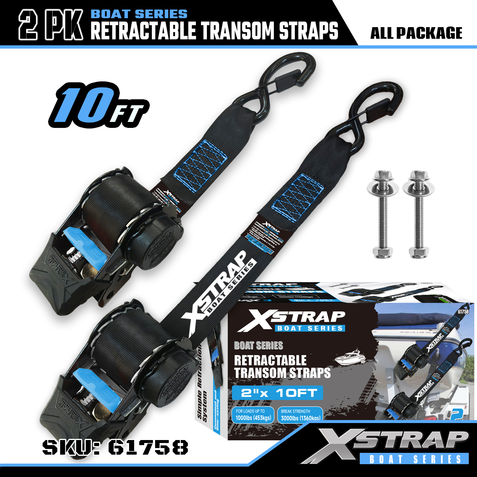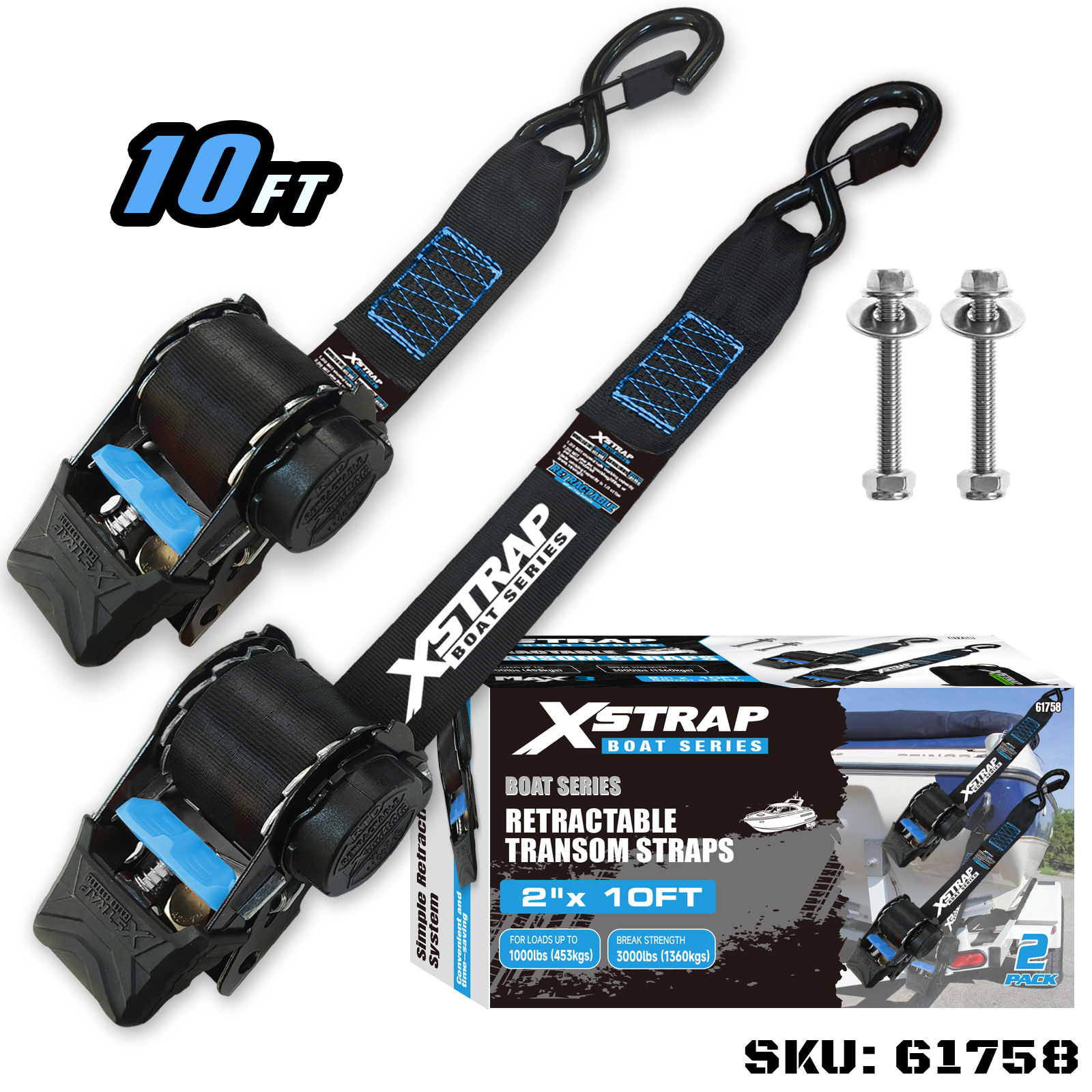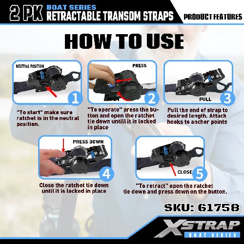 Xstrap 61758 Intrekbare spiegelriemen met veiligheidshaken 1.000 LB SWL