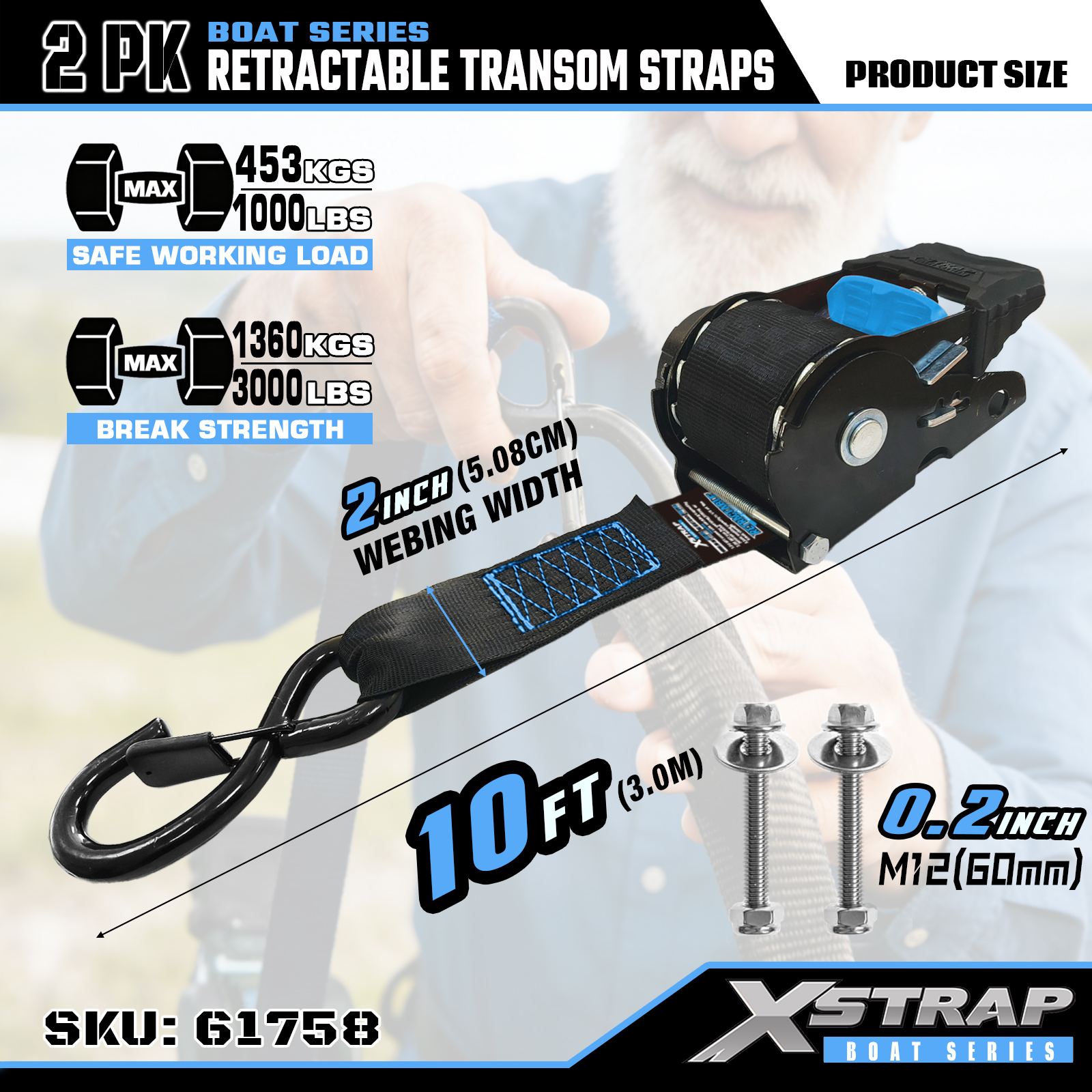 De intrekbare spiegelriem van 2 inch is een heavy-duty bevestigingsmiddel dat speciaal is ontworpen om de achtersteven (spiegel) van een boot aan de trailer vast te zetten.