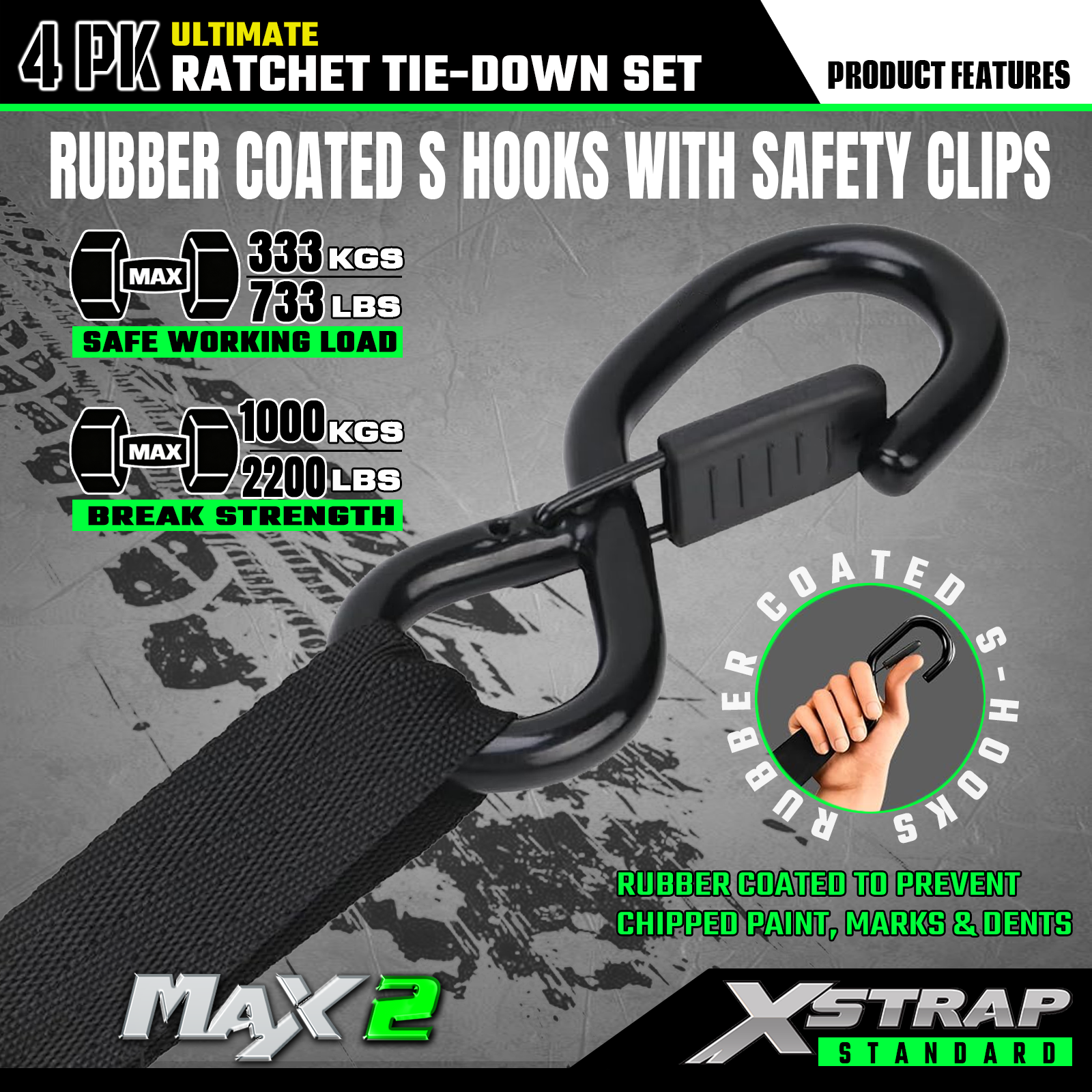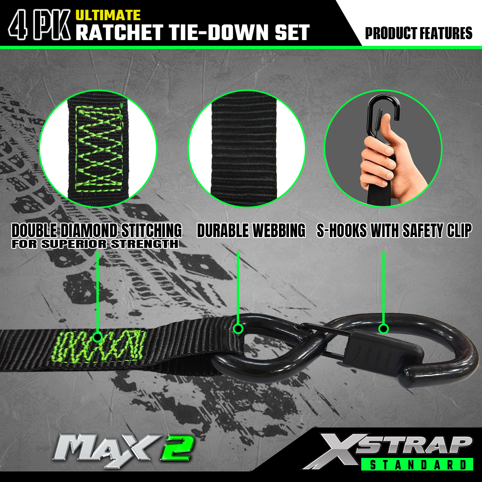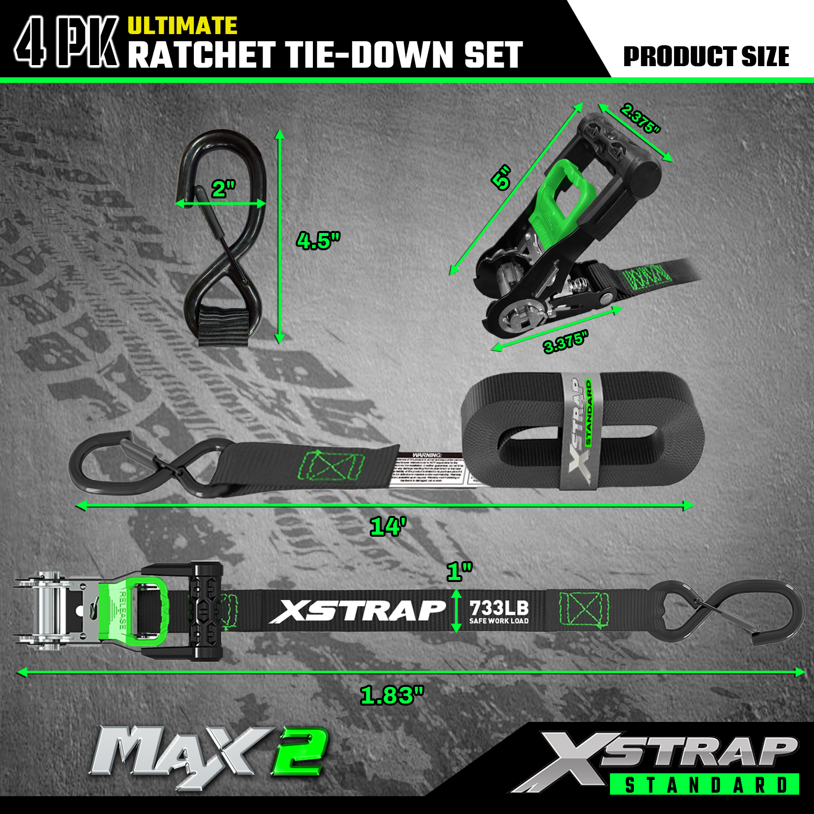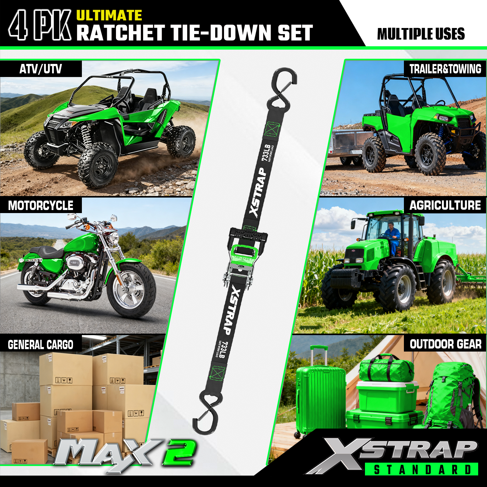 - Betrouwbaar transport: de 4 stuks spanbanden met ratel bieden een SWL van 733 lb en een BS van 2.200 lb. Het kan zorgen voor veilig transport van motorfietsen, apparaten en gazonuitrusting