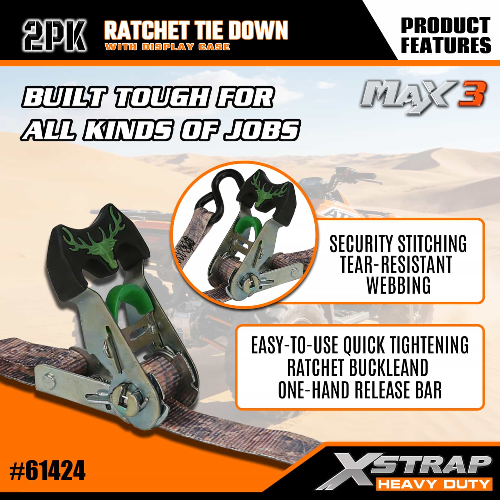 - Robuust snelspansysteem: Beschikt over een soepele, eenvoudig te bedienen ratelgesp in combinatie met een met één hand te bedienen ontgrendelingsstang - maakt snel en nauwkeurig aanspannen mogelijk om de lading veilig op zijn plaats te vergrendelen, geen gespecialiseerde vaardigheden vereist voor naadloos gebruik.l