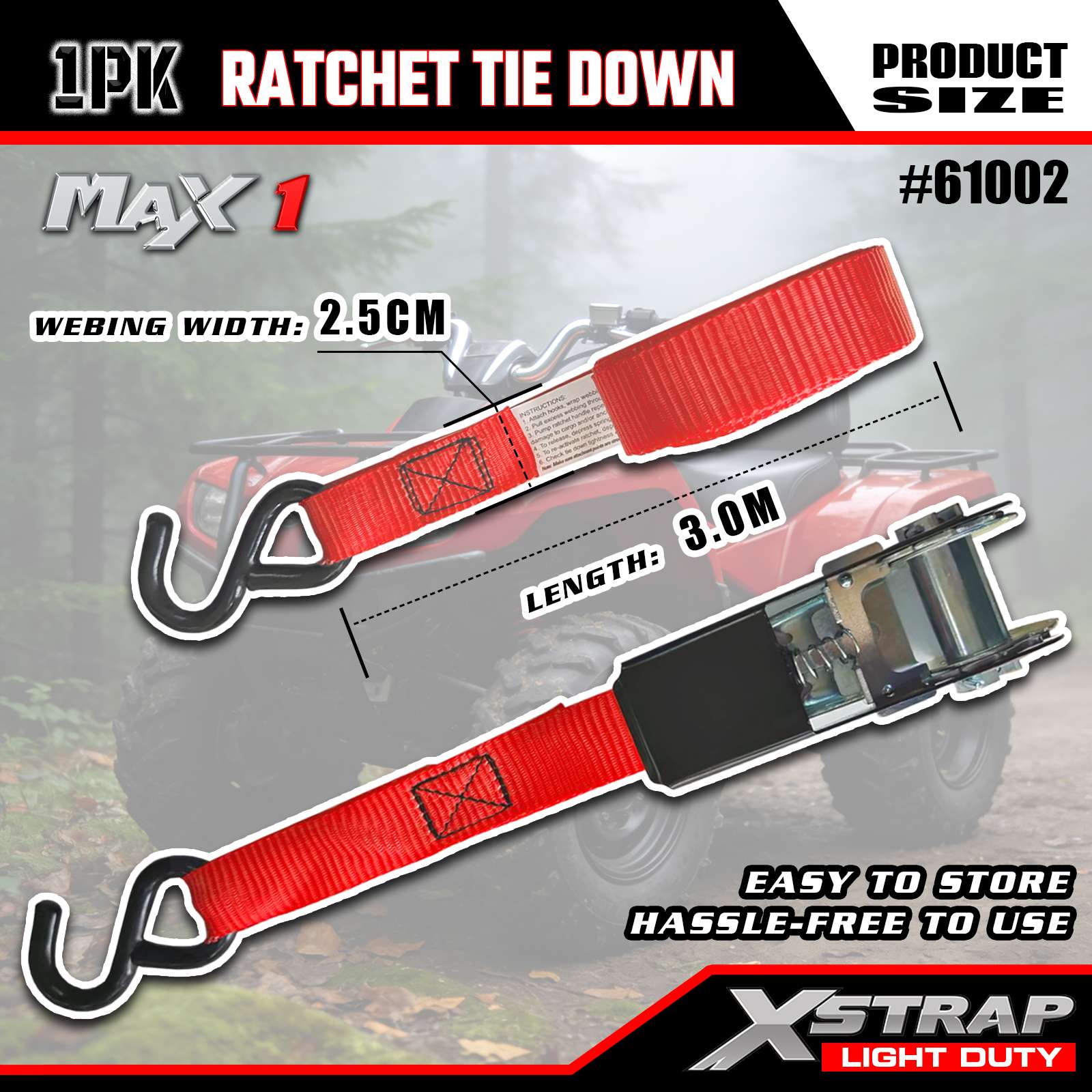 Xstrap 1-pack ratelspanbanden, 1"x10' - 300 lbs laadkap - 900 lbs breeksterkte-vrachtriemen voor het verplaatsen van apparaten, gazonuitrusting, motorfietsen, camouflage