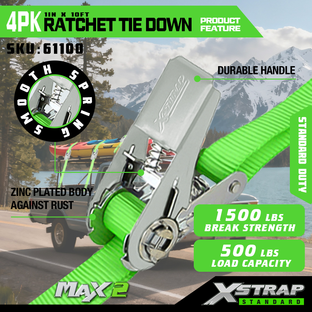 - Roestbestendig en robuust ontwerp: het verzinkte ratellichaam is bestand tegen corrosie, gecombineerd met een 1-inch band (plus extra kruissteek) voor verbeterde sterkte die stand houdt bij regelmatig gebruik.