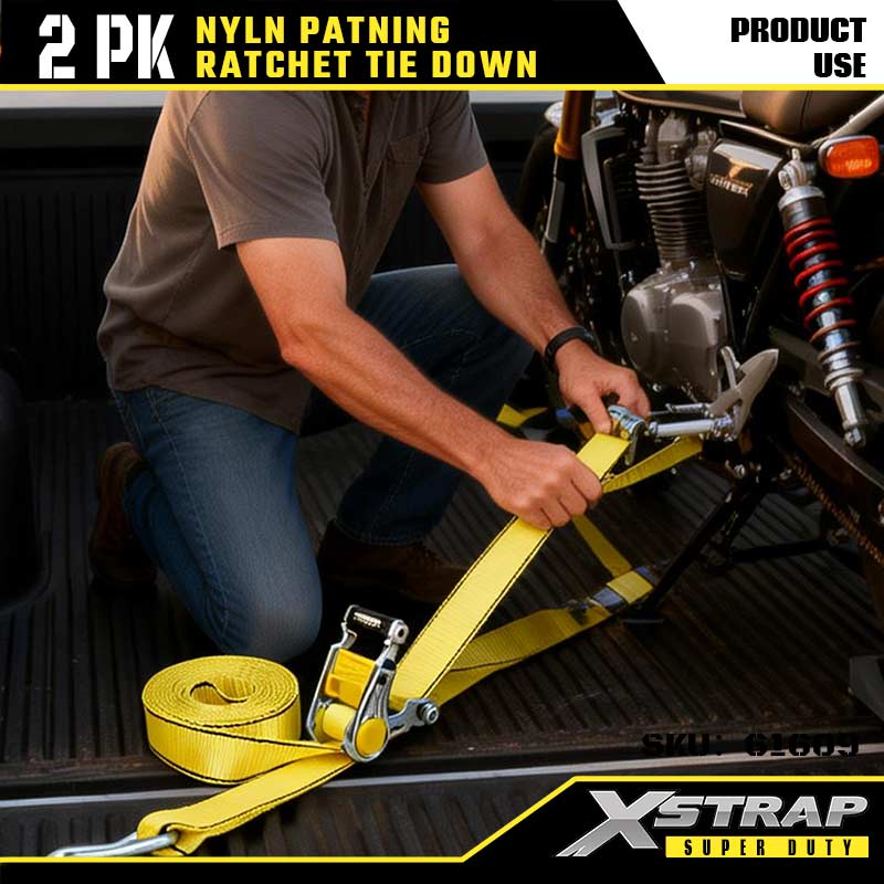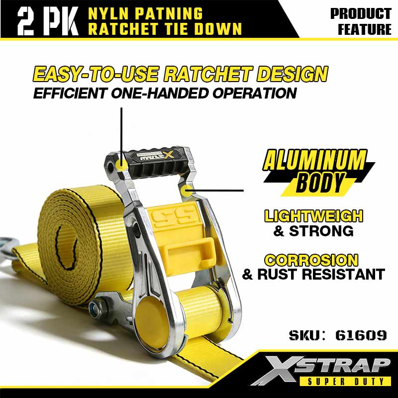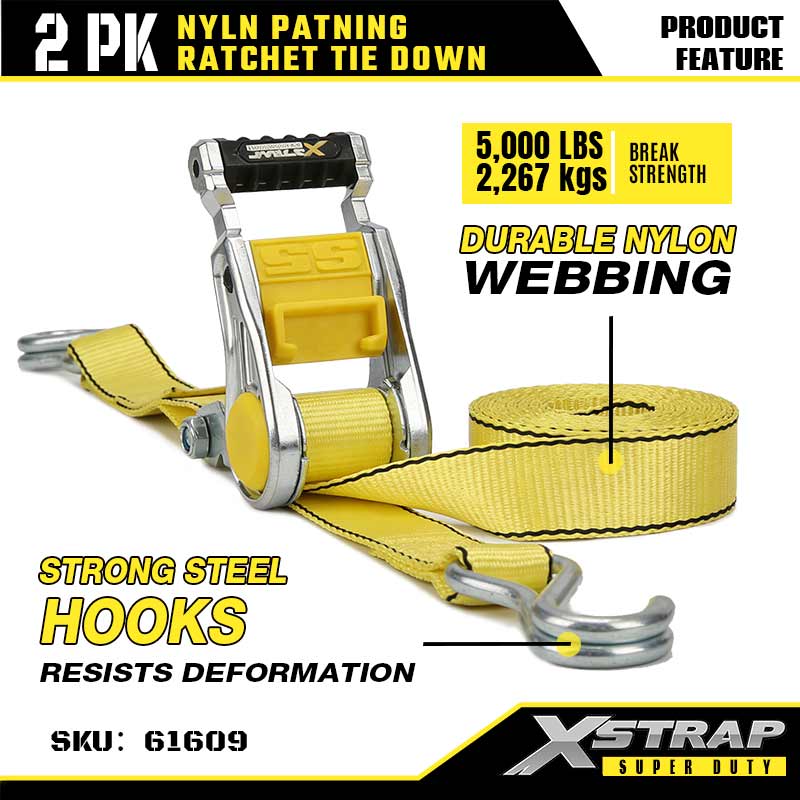 Xstrap 2PK Ratelspanband met dubbele J-haken, 2" x 3,6' polyester spanband Ratelband, capaciteit van 1667 lbs Ladingspanbanden met dubbele J-haken voor zware aanhangwagens, aanhangwagens met plat bed, skiboten, kleine auto's, zwaar materieel.