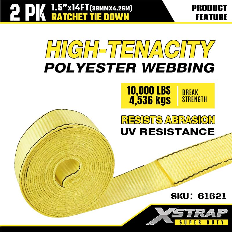 - Polyesterband met hoge sterktegraad: de 1,5-inch brede polyesterband is bestand tegen rafelen, uitrekken en UV-schade, zodat hij bestand is tegen zon, regen en ruw terrein. Het is sterk genoeg voor bouwmaterialen en zacht genoeg om je outdooruitrusting tegen krassen te beschermen.